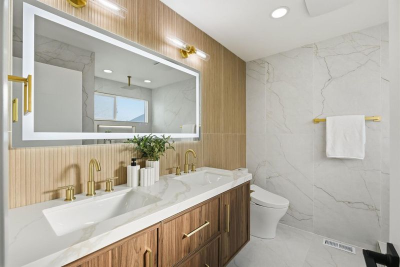 - Double Sinks, Primary - Stall Shower(s), Shower over Tub - 1, Tub, Updated Bath