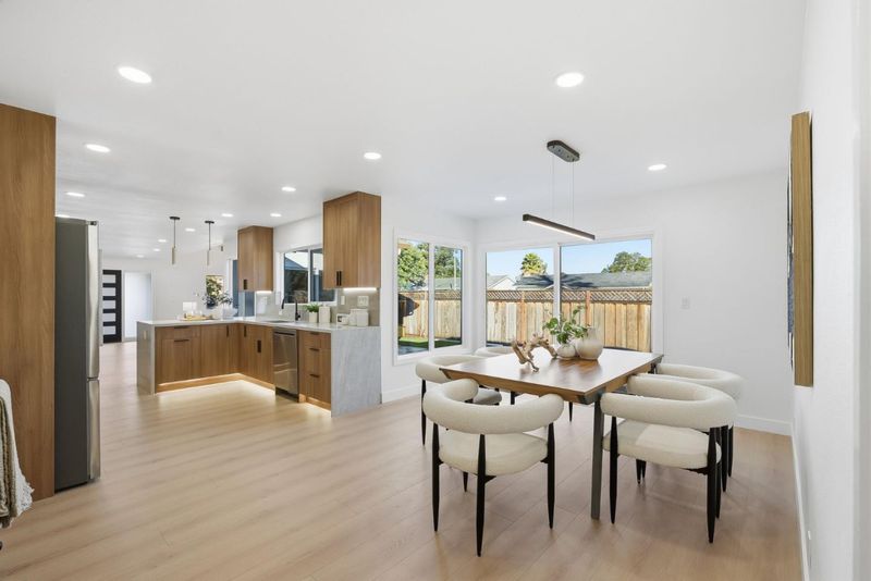 Welcome to this beautifully re-imagined home, designed for modern living and relaxed everyday comfort. The bright open layout showcases a soaring ceiling and a chef's kitchen with LG appliances and that opens to the dining and living spaces. Step outside to enjoy seamless indoor-outdoor living on a generous corner lot featuring an abundant outside entertainment space, cozy fire pit, two garden beds with fresh vegetables, a fun play structure with plenty of room for play and home expansion possibility. With 3 bedrooms and 2 full baths, this home offers flexible living and thoughtful upgrades including new flooring, updated baths, designer lighting, a 2-car garage, and brand-new furnace, water heater, and central air conditioning. Located in a highly desirable Sunnyvale neighborhood near top-rated Laurelwood Elementary, this home offers the perfect combination of comfort and style. Approximately a 1.5-mile drive to the Apple Campus, US280 entrance, and very close local shopping. Don't miss out on this opportunity!