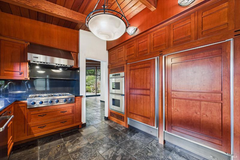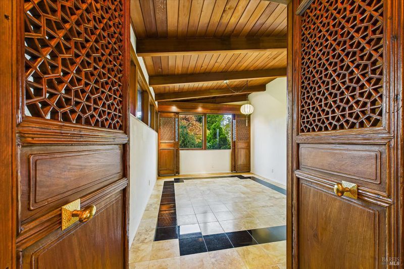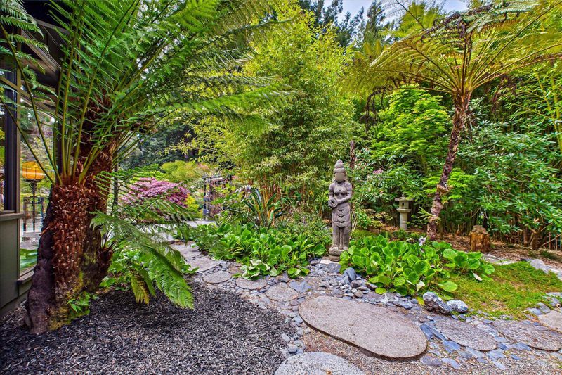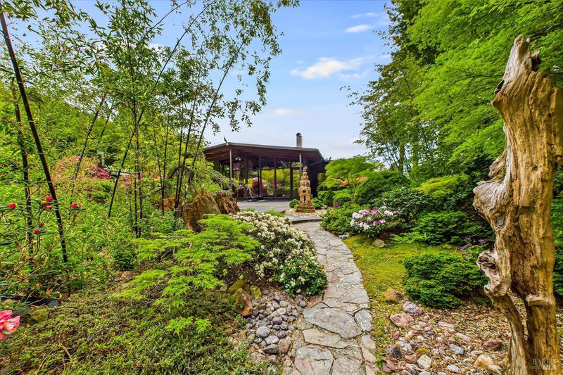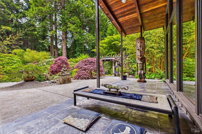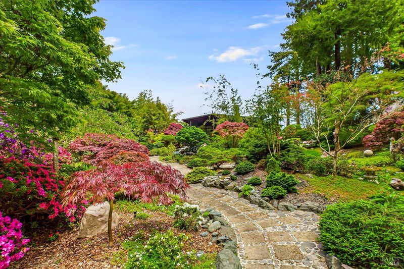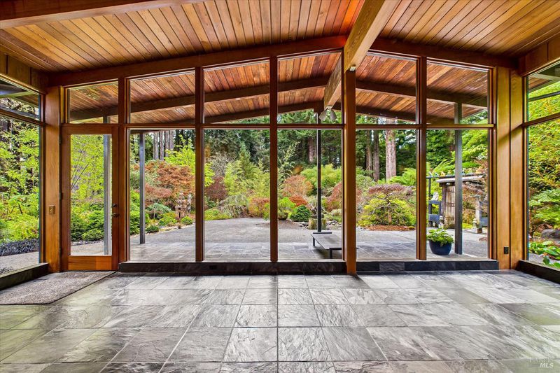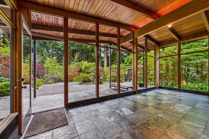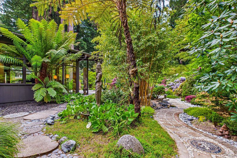 A sophisticated fusion of art, architecture, and nature, this single-story 4BD/3BA, 3,300 sq ft mid-century modern residenceoriginally crafted with old-growth redwoodwas reimagined through a complete renovation inspired by Asian interior and landscape design, creating a refined and timeless aesthetic. Walls of glass frame the gardens like living art, blurring indoor-outdoor living. Set on ~ acre with award-winning gardens, towering redwoods, and detached wine storage, the home features a chef's kitchen with Sub-Zero, Viking, and Dacor appliances, custom cabinetry, black granite, and a Butler's pantry. Heated slate floors, curated lighting, and a grand Heatilator fireplace elevate the ambiance, all finished with a newly installed roof.