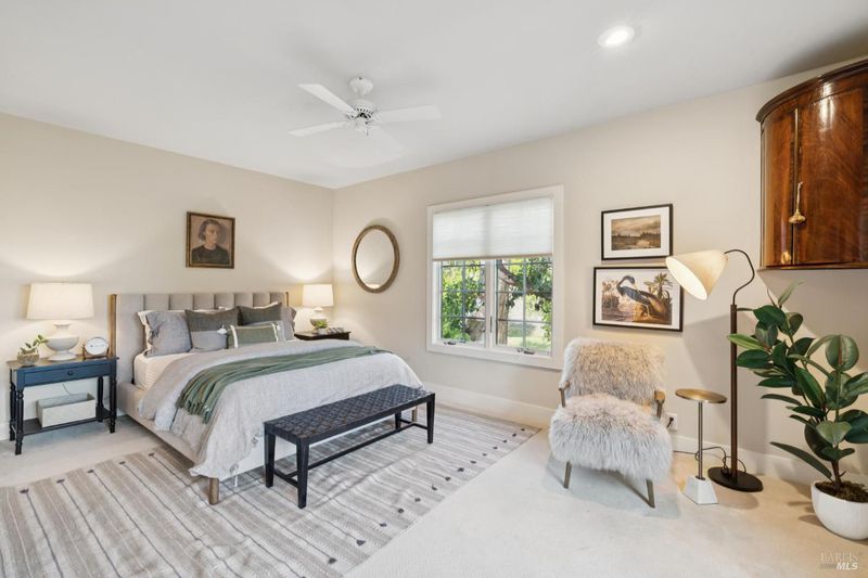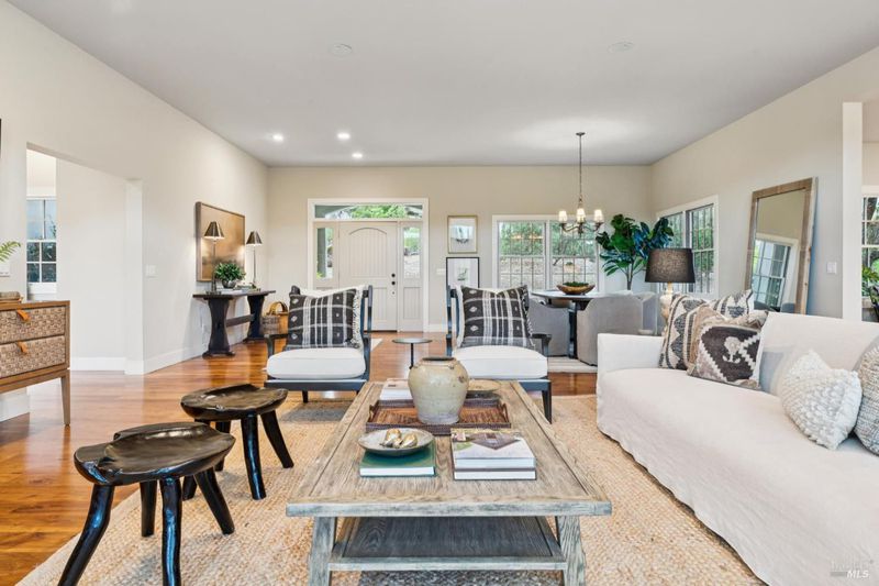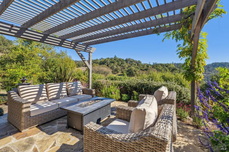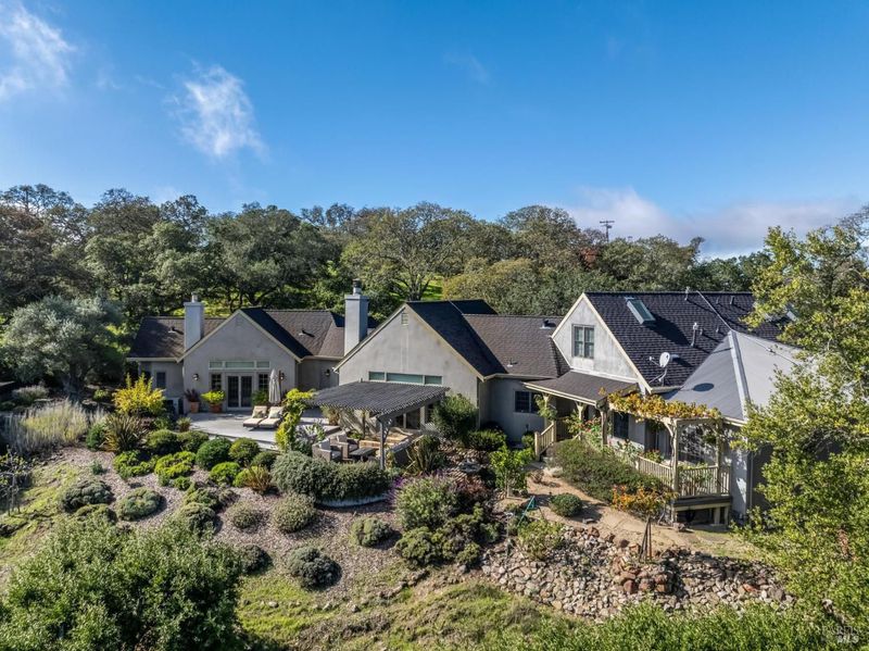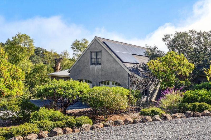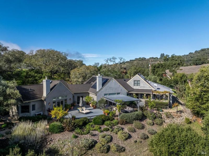 Set behind the gates of The Ranch, one of Sonoma's most coveted hillside enclaves, this single-level residence offers privacy, views, and effortless indoor-outdoor living. Located just five minutes from the gate, the property feels worlds away while remaining moments from the charm and culture of downtown Sonoma. Designed for both everyday comfort and refined entertaining, the home unfolds across a thoughtfully planned single-level layout, framed by expansive windows that capture serene vistas and natural light. The home's public and private spaces flow seamlessly to the outdoors, where gardens, terraces, and gently sloped topography provide room for a future pool or expanded outdoor amenities. Above the three-car garage, versatile finished space offers exceptional flexibility - ideal for a guest retreat, private office, studio, or fitness space - enhancing the home's livability without compromising the main residence's single-level ease. Adding to that ease and livability are a newer roof (2023), solar panels, a Tesla Powerwall, and an EV charger. Mature landscaping, rolling acreage, and thoughtful siting create a sense of seclusion, while the elevated setting delivers the quietude and exclusivity The Ranch is known for. A rare opportunity to enjoy gated hillside living just minutes from Sonoma Plaza.