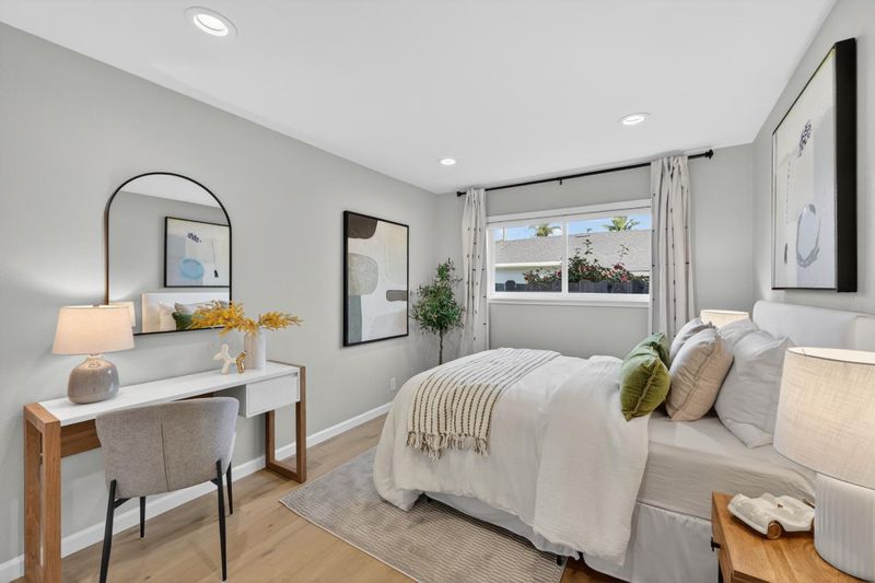 Welcome to 4533 Doyle Road in the sought-after 95129, one of West San Jose's most desirable locations. This down-to-the-studs remodel, completed in 2020 with permits, showcases thoughtful upgrades that blend modern style with everyday comfort. The open-concept layout is anchored by a chef's kitchen featuring quartz countertops, custom shaker cabinetry, and stainless steel appliances, seamlessly connecting to the dining area and light-filled family room ideal for entertaining and daily living. The spacious primary suite offers a beautifully renovated bathroom, complete with a double vanity and step-in shower. Two additional bedrooms are generously sized, and remodeled hall bath features clean, modern finishes. Engineered hardwood flooring, recessed lighting, and designer fixtures elevate the home throughout. Set back from the street, a long, curved driveway enhances privacy and curb appeal. The garage dual functions as a bonus space with LVP flooring, finished walls, and its own HVAC system perfect for a home office, gym, etc. The backyard provides ample space to relax or entertain. Ideally located near top-rated Easterbrook Discovery Elementary and minutes from Mitsuwa Supermarket, Westgate Center with convenient access to Apple Park and major Silicon Valley employers.