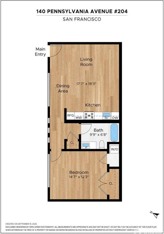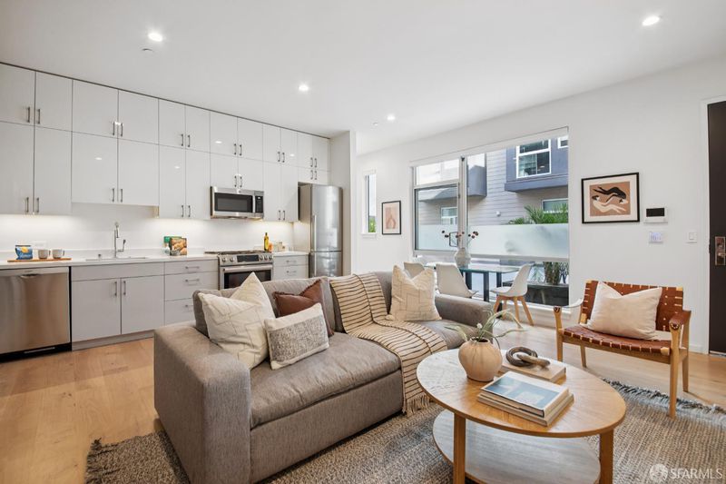 Unit 204 is a modern 1 bed / 1 bath residence in the highly desirable Potrero Hill neighborhood. Featuring an open floor plan that is spacious and welcoming, this condo is perfect for entertaining. The living space, is bright and faces the courtyard. The adjoined kitchen offers contemporary finishes, stainless steel appliances, and double-stacked cabinets to ensure that organization is made easy. American Oak Hardwood floors feature throughout this condo, including in the spacious bedroom which offers ample closet space. The bathroom is bright and modern, boasting a sleek tub/shower combo with a half-wall glass shower enclosure. This unit has a stacked washer/dryer and its own assigned storage locker & 1-car parking in the garage. Professional management, exterior and common space maintenance, unit heating, trash, and water and internet are included with the monthly HOA dues.