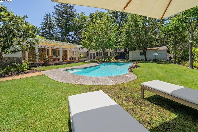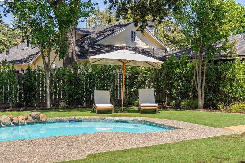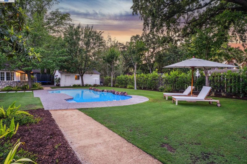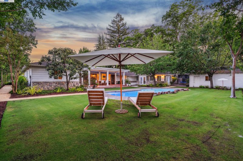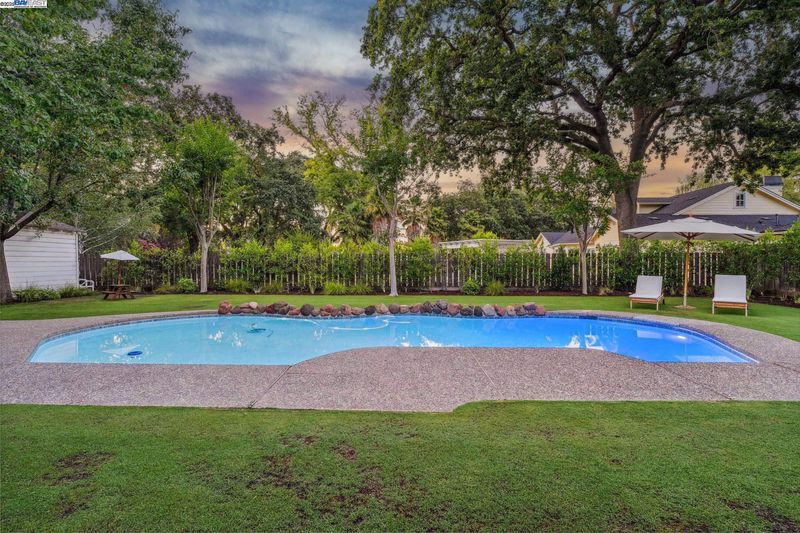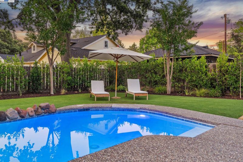 Tucked away on a quiet cul-de-sac in one of Walnut Creek’s most beloved neighborhoods, this beautifully updated single-level home offers the best of California living — with a sparkling pool, lush gardens, and seamless indoor-outdoor flow designed for everyday comfort, style, and ease. The gated front yard opens to a welcoming porch and thoughtfully landscaped entry, while the backyard unfolds into a private oasis with a pool surrounded by mature trees, vibrant lawns, and thriving garden beds — all sustainably irrigated by a greywater system. Whether you’re hosting friends, chasing kids across the grass, or unwinding by the pool, the space invites you to slow down and savor. Inside, the home radiates warmth and ample natural light, offering single-story ease with the flexibility to expand. A spacious bonus room and a detached garage provide endless possibilities for work, play, or future living space. A long gated driveway adds convenience and privacy. Just minutes to BART, the Bay Club, parks, top-rated Walnut Creek schools, and downtown dining all connected by nearby bike trails — this home, in one of the area’s most walkable, tight-knit communities, is truly unique. Owned solar provides peace of mind and added efficiency. This is the one you’ve been waiting for.