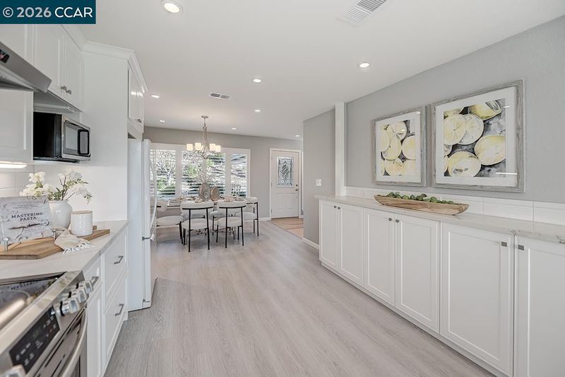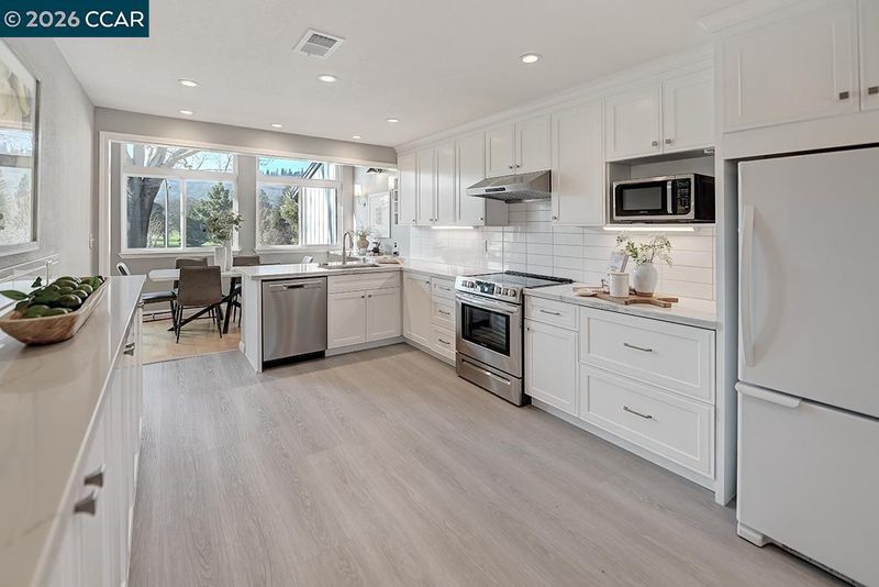 - Dishwasher, Electric Range, Free-Standing Range, Refrigerator, Dryer, Washer, Breakfast Bar, Breakfast Nook, Counter - Solid Surface, Electric Range/Cooktop, Disposal, Range/Oven Free Standing, Updated Kitchen