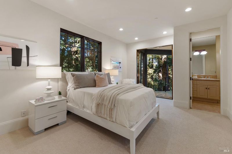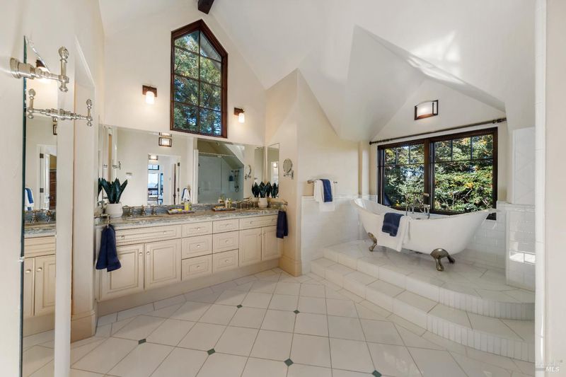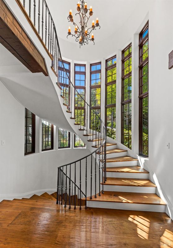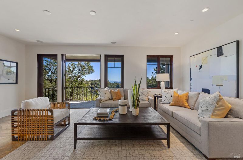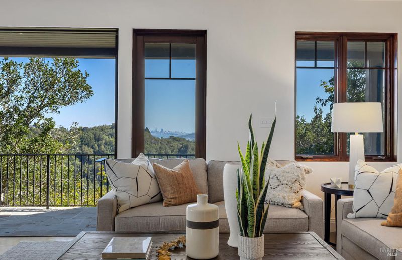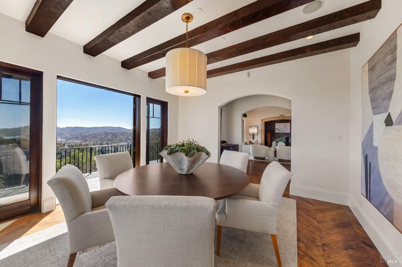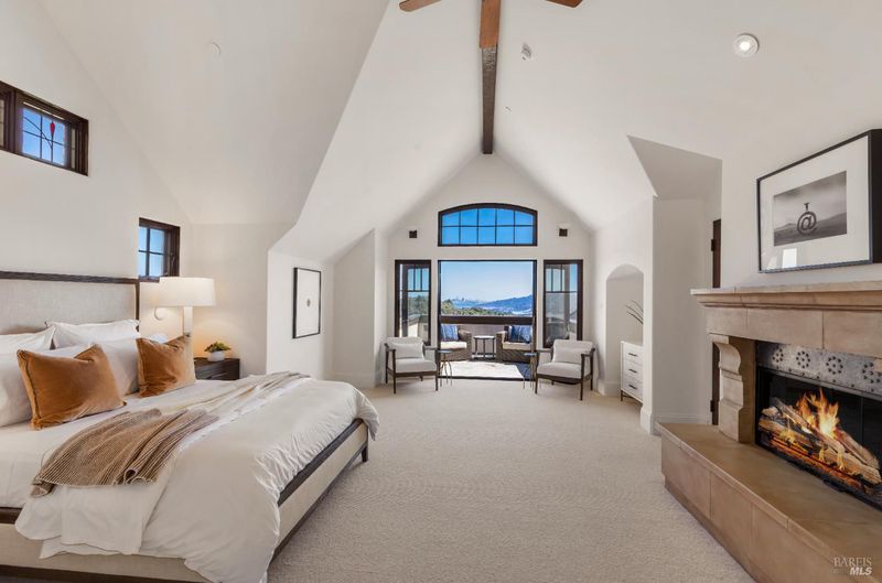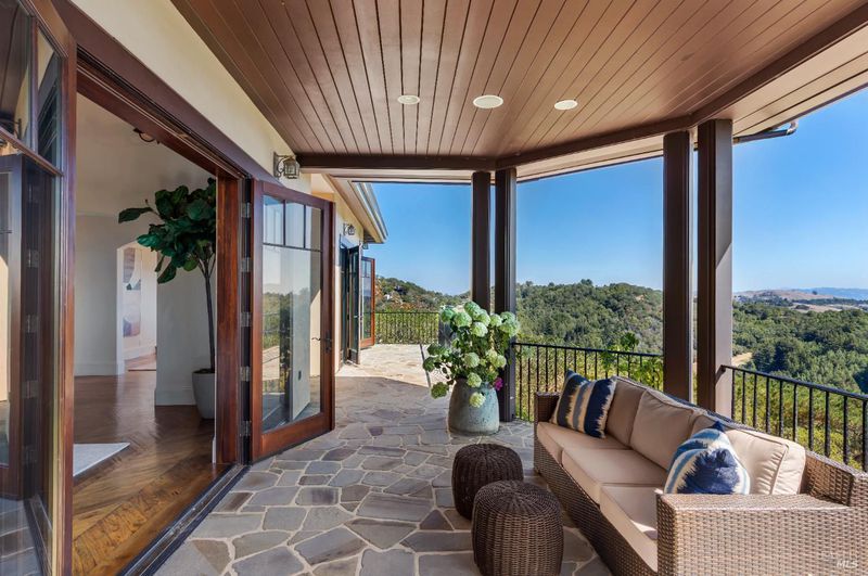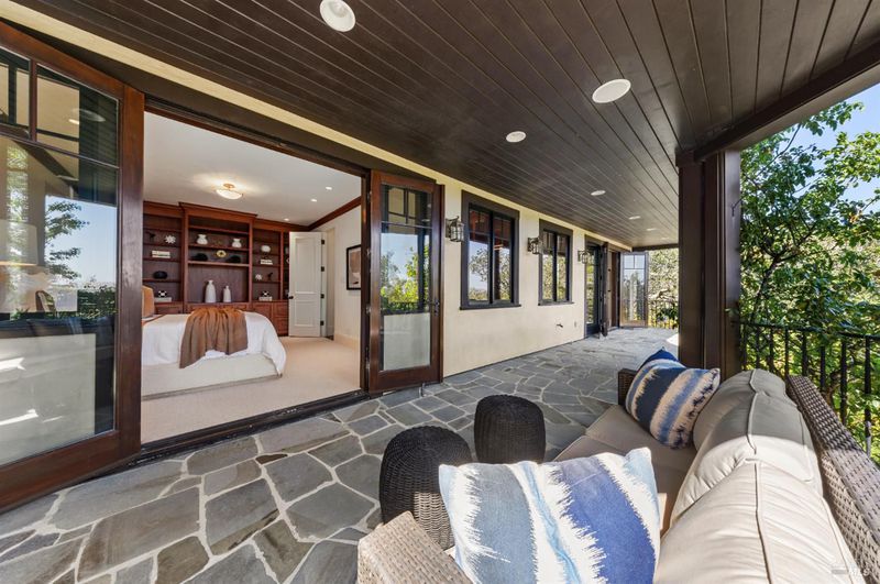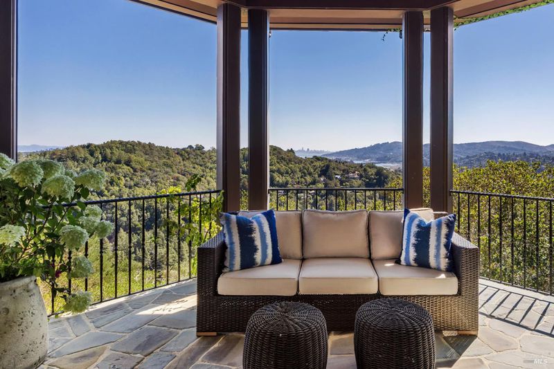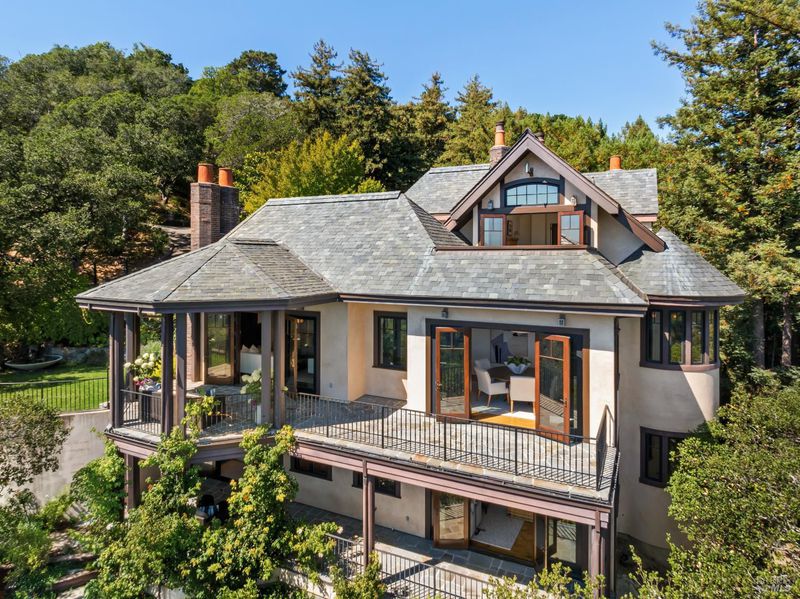 Extraordinary Mill Valley residence in a private gated enclave. This European inspired home is perfectly sighted with sweeping water, city, and open space views one mile from a vibrant downtown. Impressive interiors roll to outdoor living across multiple stone terraces surrounded by lush, mature growth. Expansive entry with soaring beamed ceilings opens to living, dining, and family rooms served by a luxurious chef's kitchen. The grand staircase leads to a dreamy primary suite upstairs, and generous ensuite bedrooms, a rich media social room & private office downstairs. The motor court fronts a large garage with studio residence above. Completed late 2003 as a build of unparallelled quality by Jim Kelly/Kelly Pacific and designed with no detail overlooked by Jessup Associates Architects. Slate roof, Venetian plaster walls, heated hand hewn herringbone wood floors, massive doors and figured hardwood cabinetry only start the list. Beyond the driveway, you're immediately on to Blithedale Ridge's extensive scenic hiking trails, or down a simple path to Mill Valley golf course, swim & tennis club and downtown. This gracious residence lives and entertains with impressive scale and pride of ownership, while maintaining a relative intimacy ideal for day to day living.