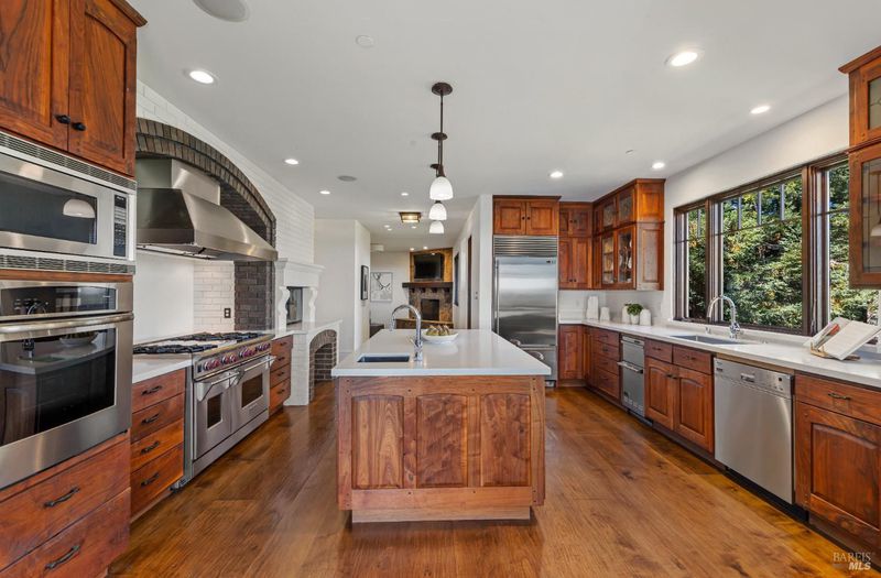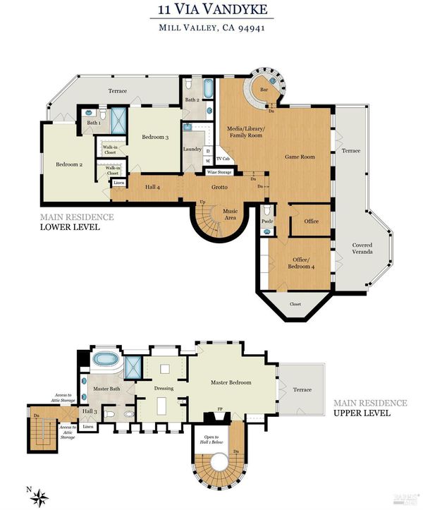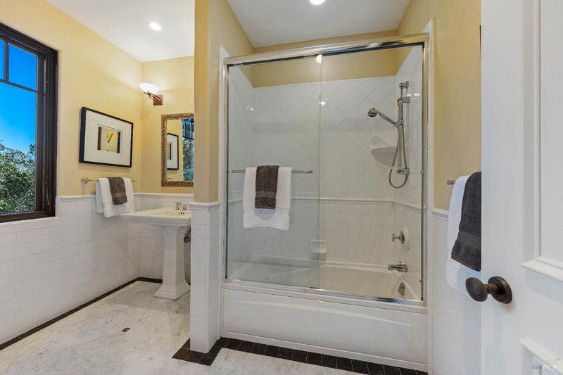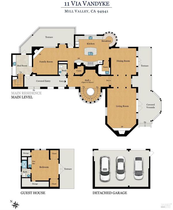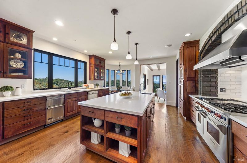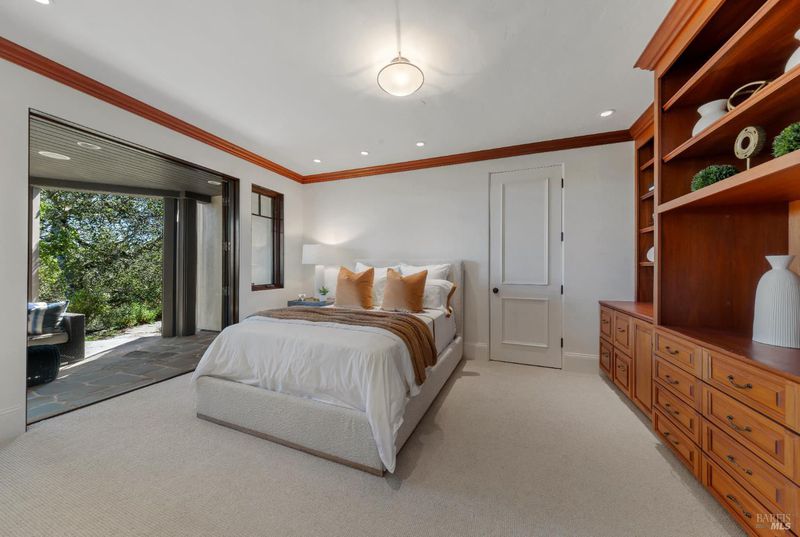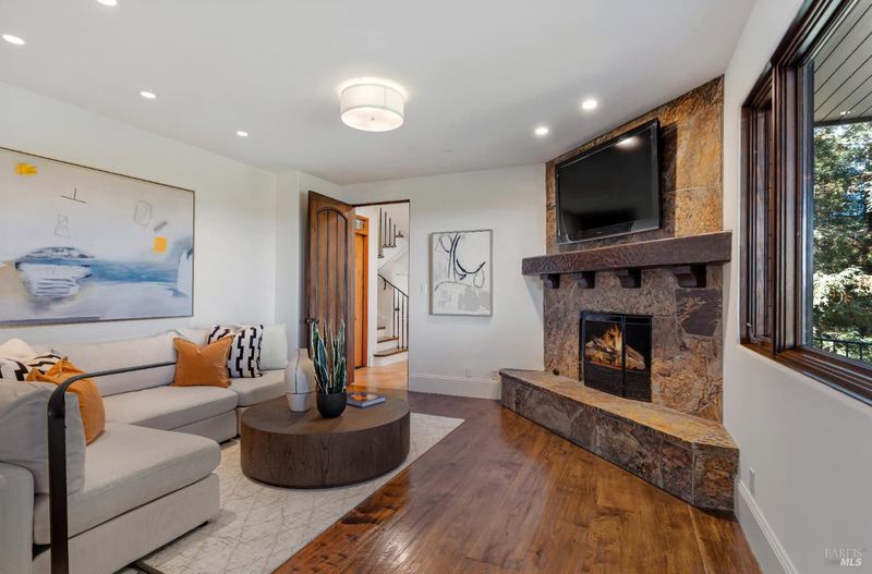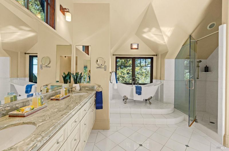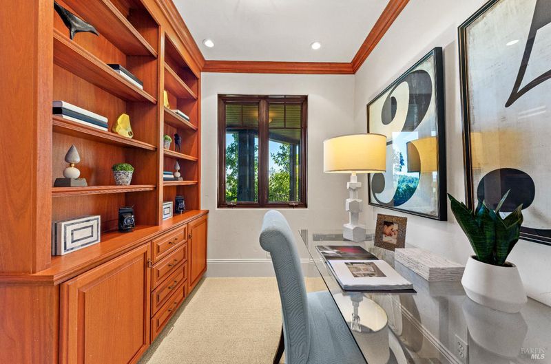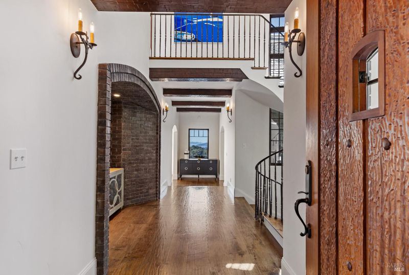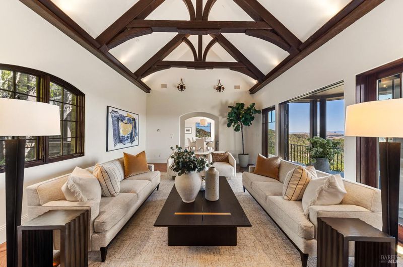 Extraordinary Mill Valley residence in a private gated enclave. This European inspired home is perfectly sighted with sweeping water, city, and open space views one mile from a vibrant downtown. Impressive interiors roll to outdoor living across multiple stone terraces surrounded by lush, mature growth. Expansive entry with soaring beamed ceilings opens to living, dining, and family rooms served by a luxurious chef's kitchen. The grand staircase leads to a dreamy primary suite upstairs, and generous ensuite bedrooms, a rich media social room & private office downstairs. The motor court fronts a large garage with studio residence above. Completed late 2003 as a build of unparallelled quality by Jim Kelly/Kelly Pacific and designed with no detail overlooked by Jessup Associates Architects. Slate roof, Venetian plaster walls, heated hand hewn herringbone wood floors, massive doors and figured hardwood cabinetry only start the list. Beyond the driveway, you're immediately on to Blithedale Ridge's extensive scenic hiking trails, or down a simple path to Mill Valley golf course, swim & tennis club and downtown. This gracious residence lives and entertains with impressive scale and pride of ownership, while maintaining a relative intimacy ideal for day to day living.