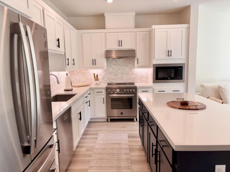 - Cooktop - Electric, Countertop - Quartz, Dishwasher, Exhaust Fan, Garbage Disposal, Microwave, Oven Range - Electric, Refrigerator