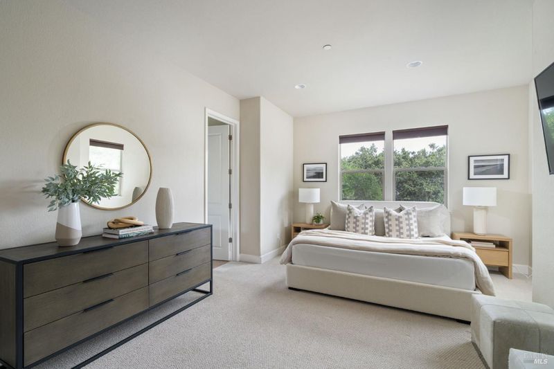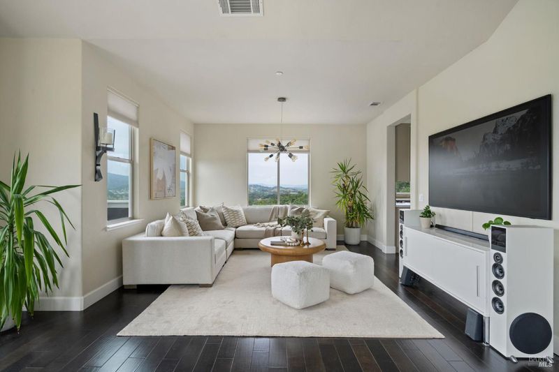 Tucked behind a private gate at the end of a quiet cul-de-sac, 11 Edgehill Way offers an immediate sense of privacy and serenity. Built in 2012, the home is designed to take full advantage of its setting, with expansive windows, stunning views, and a natural connection to the surrounding hills. Natural light filters through the interiors, highlighting the home's scale and openness while maintaining a grounded, comfortable feel. The main level centers around connection. The living room, dining area, and kitchen flow seamlessly together, creating a space that works just as well for everyday living as it does for hosting. A recently updated kitchen anchors the space, complete with a central island, 5-burner gas cooktop, and a kitchen sink window positioned to take in the views. A private balcony with a fire pit extends the living area outdoors as a central place to unwind or gather, framed by rolling hills and the surrounding areas of San Rafael. The layout offers flexibility across three levels, with two primary suites providing options for how the home lives over time. The upper level suite feels tucked away and private, with its own balcony and en-suite bathroom, while the lower level includes an additional primary with an en-suite along with two more bedrooms and a full bath, perfect for guests, extended family, or work-from-home needs. The property itself offers both privacy and potential, with a generous hillside lot that could be further enhanced over time.. A neighborhood trail sits just outside the home, with easy access to China Camp State Park's 1500 acres of open space. The Sunday farmers market at the Marin Civic Center is the 3rd largest farmers market in California with 150 year-round vendors. Enjoy easy access to HWY 101 for travel to both San Francisco and Wine Country, all while remaining within a quiet, close-knit gated community.