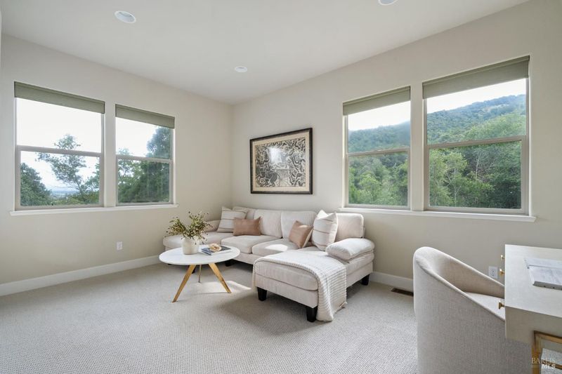 Tucked behind a private gate at the end of a quiet cul-de-sac, 11 Edgehill Way offers an immediate sense of privacy and serenity. Built in 2012, the home is designed to take full advantage of its setting, with expansive windows, stunning views, and a natural connection to the surrounding hills. Natural light filters through the interiors, highlighting the home’s scale and openness while maintaining a grounded, comfortable feel.