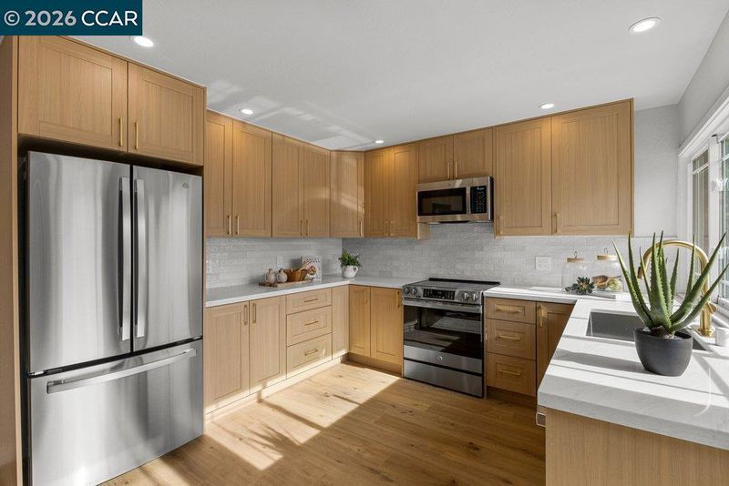 Completely renovated single-story home situated at the end of a quiet court, offering both privacy and convenience. The residence features a thoughtfully redesigned interior with new laminate flooring throughout and a modern kitchen appointed with rift oak cabinetry, quartz countertops, a custom backsplash, and new stainless steel appliances. Renovated bathrooms showcase designer finishes and a cohesive, contemporary aesthetic. Additional upgrades include a new roof and newly completed landscaping, creating a turnkey opportunity both inside and out. A rare combination of location, single-level living, and quality improvements.
