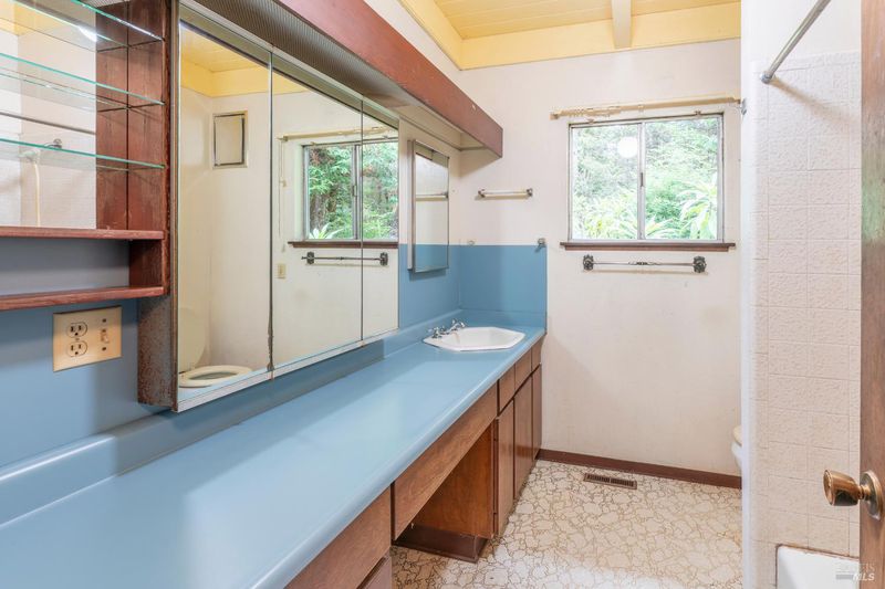 Down a quiet paved lane to the end of the road is this private Mendocino home in a great neighborhood-featuring high ceilings, sky lights and spacious rooms. Grand beautiful Redwoods rim the perimeter,but this lot also has light filled areas of sun to enjoy as well.Minutes to the Village,and in the desirable Mendocino School District,this is a perfect investment home to add improvements,upgrades,and personal touches.2 bdrms,2 baths with additional separate space for potential guests.Reports are done, so this home awaits someone to bring it forward to the next phase.Lost of potential here!Make this home your own, and enjoy all the Coast can offer!