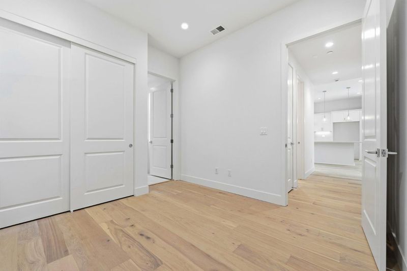 Plan 3 Courts is a stunning single-family detached home featuring 4 bedrooms, 4.5 bathrooms, and a side-by-side two-car garage. The open-concept main floor showcases a spacious kitchen with quartz countertops, a large island, Bosch appliances, and a dedicated dining areaperfect for everyday living and entertaining. Design features include engineered hardwood floors, paint-grade shaker-style soft-close cabinetry, & 4" LED recessed lighting, creating a seamless, modern design. Upstairs, a versatile bonus room with en-suite full bath is ideal for a gaming zone or media space. The primary suite features dual vanities, a generous walk-in closet, and a retreat for a home office or library. A private rooftop deck provides space for outdoor dining and relaxation. Solar panels are available to lease or own. Move-in ready .Detached condominium. Residents enjoy a 2-acre public park with walking and biking trails, and a shared BBQ space. Less than a mile from City Center, with premier shopping, dining, and entertainment, and convenient access to the Iron Horse Trail, Bridges Golf Club, schools, transit, and workplaces, this community is ideal for todays connected lifestyle. Photos include renderings, of actual finishes.