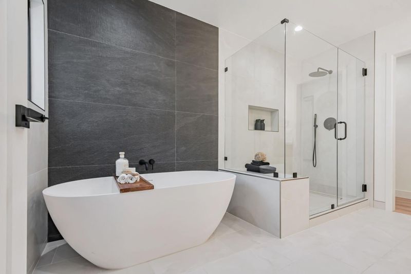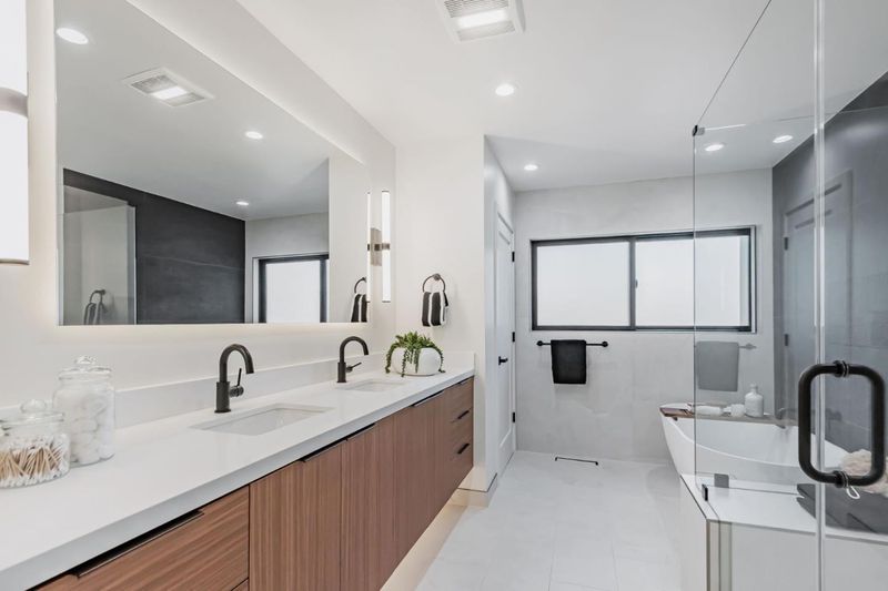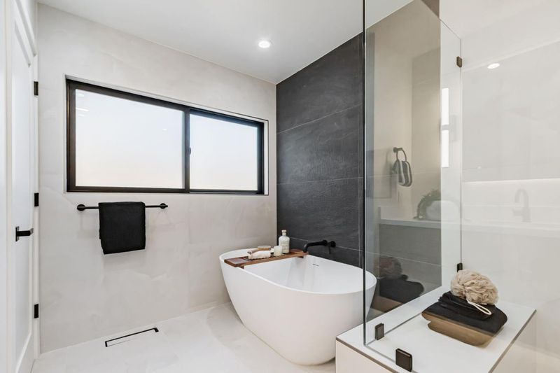 - Bidet, Double Sinks, Primary - Stall Shower(s), Stall Shower, Stone, Tile, Tub in Primary Bedroom, Updated Bath