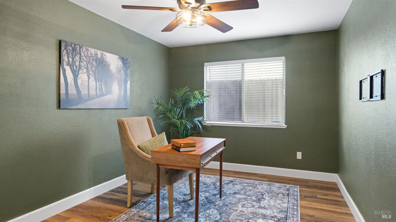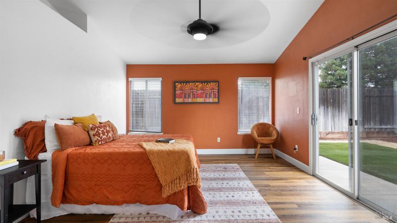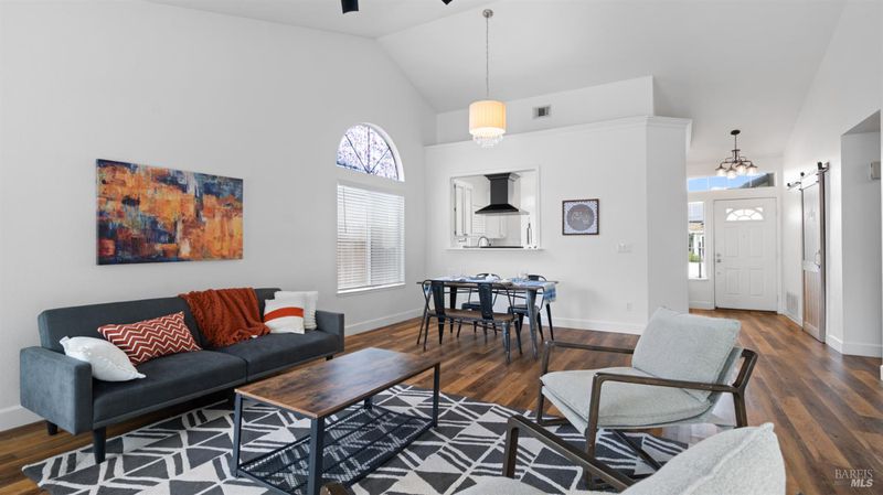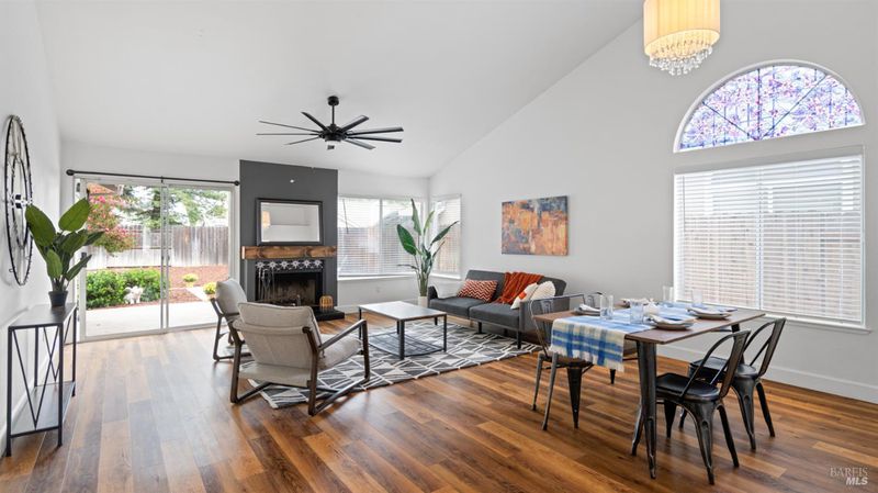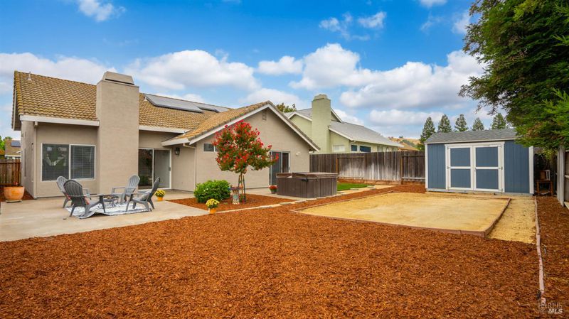 Welcome to this beautifully maintained single-story home offering 3 spacious bedrooms and 2 bathrooms. Boasting a 3-car garage, this property combines comfort, style, and functionality. The updated kitchen features sleek quartz countertops and modern finishes, perfect for both everyday living and entertaining. The open and inviting floor plan includes generously sized bedrooms, while the newer A/C system and owned solar provide year-round comfort and efficiency. Fresh exterior paint adds to the home's curb appeal, making it move-in ready. Step outside to the large backyard, complete with a relaxing hot tub and plenty of space for gatherings, gardening, or play. This home is the perfect blend of modern updates and timeless charm.