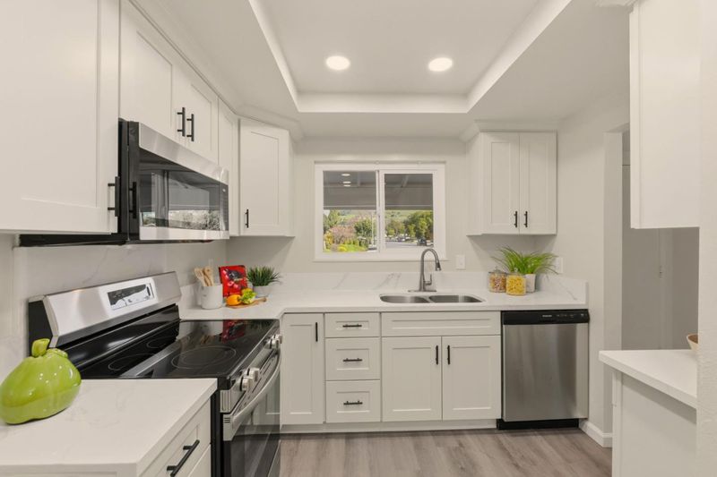 Single-story home renovated with a thoughtfully updated interior, foothill views, and low-maintenance landscaping. The kitchen features new cabinetry, quartz countertops, stainless steel appliances, and luxury vinyl plank flooring throughout the home. A separate family room with a fireplace provides a comfortable and inviting living space. Updated bathrooms feature refreshed lighting and finishes. Additional highlights include recessed lighting, dual-pane windows, copper plumbing, central heating and air conditioning, and a two-car garage with an automatic roll-up door. Ideally located near top-rated schools in Piedmont Hills, parks, nature trails, and with convenient access to major freeways. A wonderful opportunity for move-in-ready living with scenic surroundings.