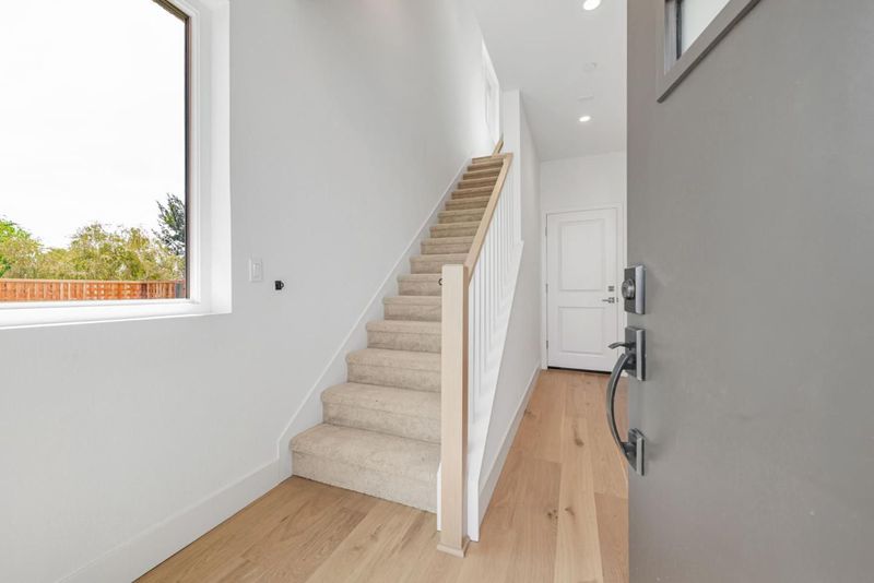 Introducing Plan 5 at 28Fifty a beautifully designed corner home offering 4 bedrooms, including a convenient ground-floor bedroom and full bathroom suite, ideal for guests or multigenerational living. The open-concept main living area seamlessly connects the kitchen, dining, and family rooms, creating an inviting space for everyday living and entertaining. The kitchen features high-end Bosch stainless steel appliances, elegant quartz countertops, and classic shaker-style white cabinetry. Engineered wood flooring spans the first and second levels, adding warmth and modern style throughout. Retreat to the top-floor primary suite, showcasing soaring 11-foot ceilings, a spacious walk-in closet, and an en-suite bathroom for ultimate privacy and comfort. Two additional bedrooms and a full bathroom provide flexibility for family, home office, or guest use. Enjoy outdoor living with your own private patio and deck perfect for relaxing or entertaining. Residents also have access to a central community park, ideal for gatherings and outdoor enjoyment. Located near major employers, with easy highway access, this home is less than 3 miles from downtown Palo Alto's shops and restaurants. Top-ranked schools nearby make it an excellent choice for families. Estimated Move in- March 2026!