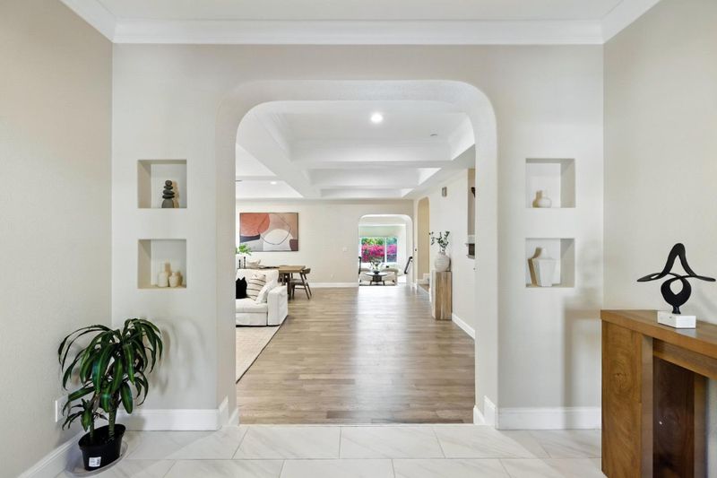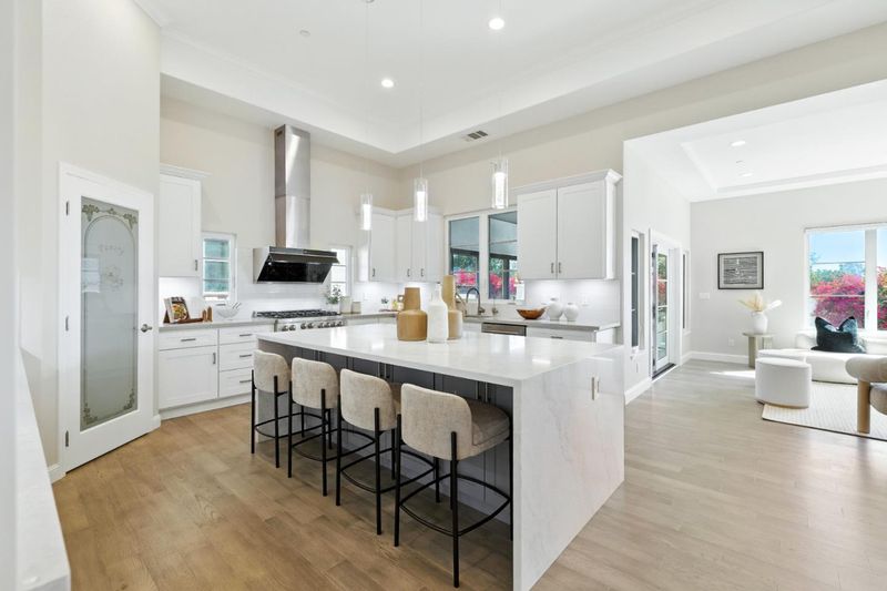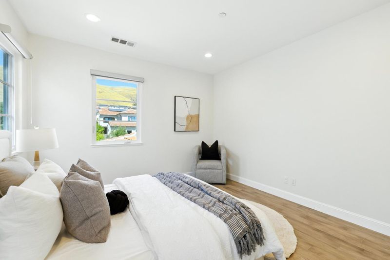 Welcome to this Spanish-style luxury home nestled against the scenic foothills of Fremont's highly sought-after Mission District! With NO HOA ! The main level boasts a private en-suite bedroom with soaring 12-foot ceilings, ideal for guests or multi-generational living. The gourmet kitchen impresses with a sleek Quartz waterfall island, SS appliances, and a generous walk-in pantry. It flows seamlessly into the expansive living space and a bright enclosed sunroom, perfect for year-round enjoyment. Additional features include a well-appointed mudroom, a stylish half bath, and a 3-car finished garage equipped with EV charging outlets. The home also offers dual-zone central heating and cooling, elegant whole-house custom window treatments, and high-end built-in cabinetry in the den. Upstairs, a spacious loft landing opens to a balcony with tranquil hillside views. The primary suite serves as a luxurious retreat, complete with a soaking tub, separate shower, dual vanities, and a walk-in closet. Three additional bedrooms each include en-suite or nearby baths, and the full laundry room adds everyday convenience. Situated close to major freeways, shopping, and dining, this exceptional property offers location, luxury, and lifestyle in one of Fremont's most prestigious neighborhoods.