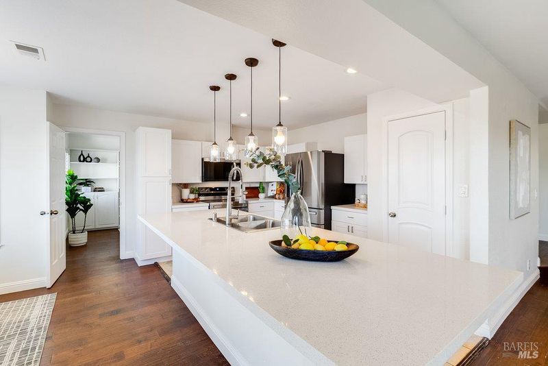 Welcome to this beautiful, turnkey Premiere home in one of Benicia's most coveted neighborhoods. Boasting an open-concept floor plan with soaring cathedral ceilings, this 3-bedroom plus bonus room home is the perfect blend of style and function. Recently updated with a brand-new kitchen, plush new carpeting, and fresh interior and exterior paint, this residence is truly move-in ready. The heart of the home features a centralized office/bonus room, a stylish wet bar and a bright breakfast nook. Upstairs, enjoy panoramic views of the water and city lights from the spacious primary suite. Additional amenities include a finished 2-car garage ideal for a home gym, an interior laundry room, and a large gated side yard with RV/boat access, a tough shed and a dog run. The drought-resistant landscaping and new fencing provide a low-maintenance retreat and the raised garden beds make for a gardener's delight. Located just steps from the Big Slide Park and Matthew Turner Elementary, and minutes from the historic charm of First Street's shopping and dining. Your Benicia dream starts here!