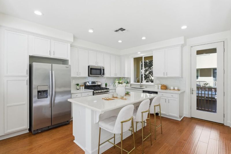 Prime location facing the community park and greenbelt! This beautiful home is located in the desirable Avenue Community and offers the rare advantage of no neighbors above or below. The home features an open-concept layout with high ceilings and contemporary upgrades throughout. The gourmet kitchen includes a new quartz countertop, a large island, stainless steel appliances, modern cabinetry, and a private balcony. The living area is highlighted by attractive flooring with great sunlights. Side-by-side two-car garage with ample storage, dual-zone central A/C and heating, and a tankless water heater. Low HOA fees include trash service, common area insurance, playgrounds, and greenbelt areas. Conveniently located within walking distance to the BART station, shopping centers, the Great Mall, and reputable public and private schools: Mattos Elementary and Stratford K-12. Easy access to public transportation, major freeways, and nearby tech companies. No rental restrictions. Don't miss it!