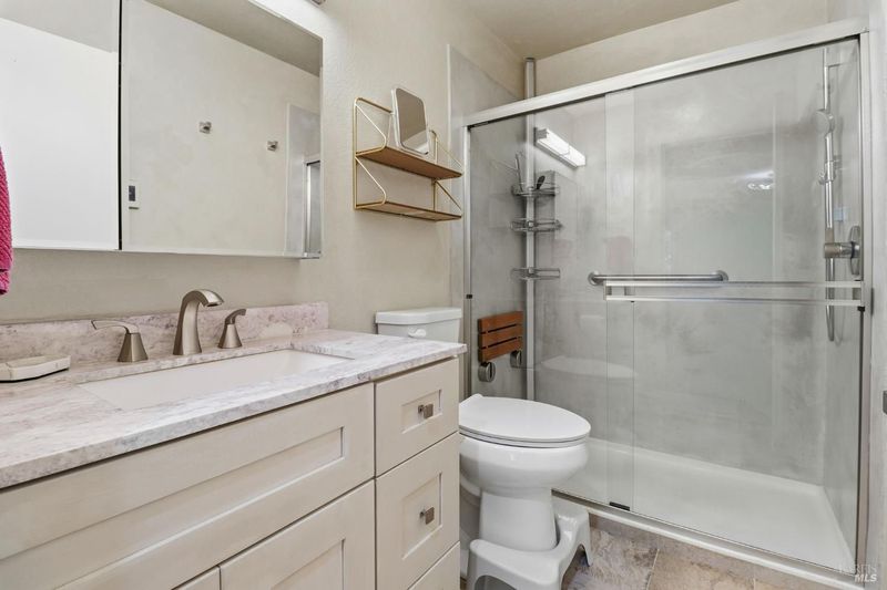 Your Perfect Haven Awaits - Sophisticated 55+ Community Living in Petaluma. Discover quiet luxury in this meticulously remodeled 1-bedroom, 1-bathroom upstairs end-unit condominium where every detail speaks to refined comfort and a soul-soothing environment. This move-in ready gem features a new dual-zone heat pump for year-round climate control, new kitchen appliances, and spa-like heated tile bathroom floors and a cozy electric fireplace to enhance the feel-good ambiance. High-quality engineered wood floors flow throughout, complemented by calming neutral colors and intricate wall accents. There is a place for everything with custom closet organization systems in every closet. Among its many upgrades, this unit also has new energy-efficient windows, an efficient tankless water heater, a new insulated balcony slider, and a high-end front door with a durable screen. Enjoy the enhanced privacy of an upstairs end-unit location. Additional amenities include on-site laundry facilities (with potential for in-unit hookups subject to HOA approval), resident clubhouse, and an ideal location near downtown and freeway access. This is more than a home - it's your next chapter of comfortable, carefree living.