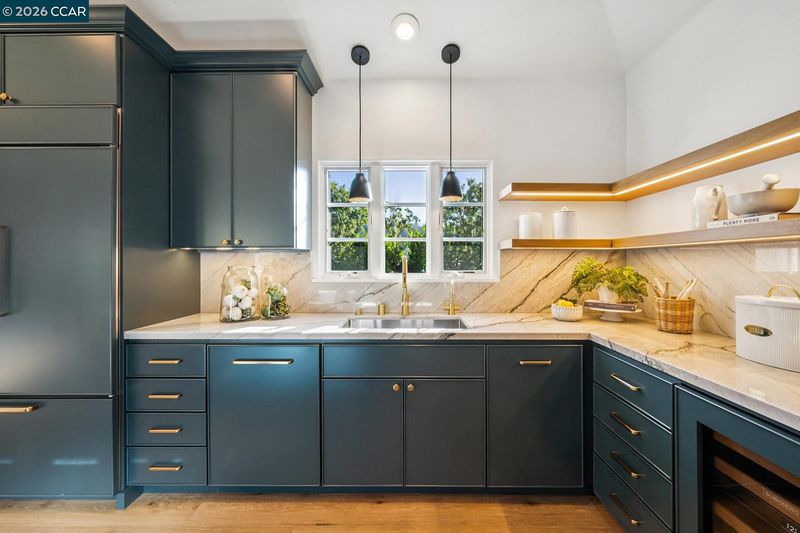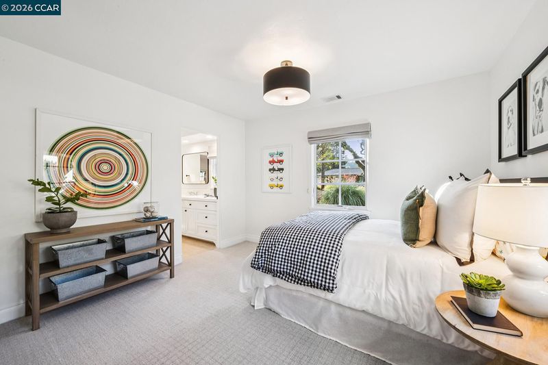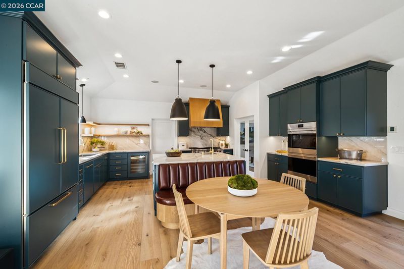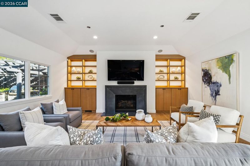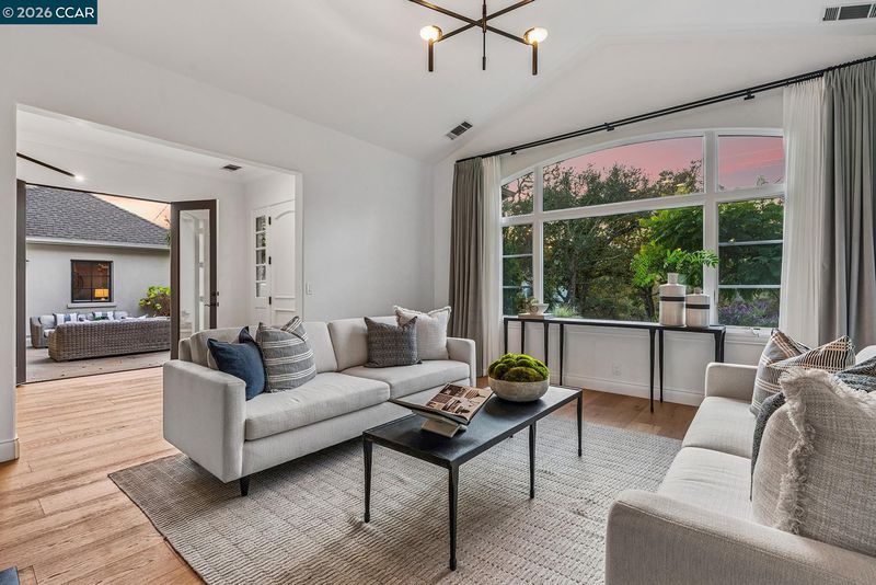 Welcome home to this Trail neighborhood retreat. Re-built by renowned builder Jeff Momsen and refreshed in 2025 by Emerson Grace Design, this single-level home blends California charm with modern updates. Step inside to find open-concept living where French doors flood rooms with light and open onto multiple outdoor spaces. The chef's kitchen features custom cabinetry, beautiful countertops, artisan backsplash, and premium appliances. Hip banquette seating invites lingering coffees while the family room keeps everyone connected. An oversized bonus room with pool access is perfect for movie nights. Custom closets, refreshed bathrooms, and two fireplaces with honed marble surrounds add elegance throughout. Outside, the upgraded saltwater pool and spa, built-in grill, generous patios, and pristine lawn create your private resort. The charming cabana offers endless possibilities—office, studio, sanctuary. Steps from Lafayette-Moraga Trail, minutes from downtown boutiques and restaurants, close to Walnut Creek, zoned for Acalanes High School, with easy San Francisco access.