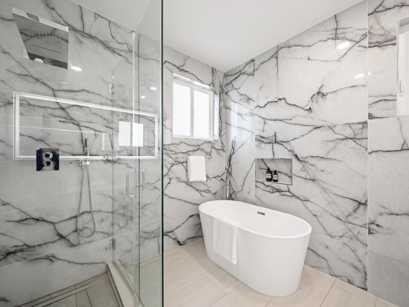 - Double Sinks, Full on Ground Floor, Primary - Stall Shower(s), Shower and Tub, Tub in Primary Bedroom