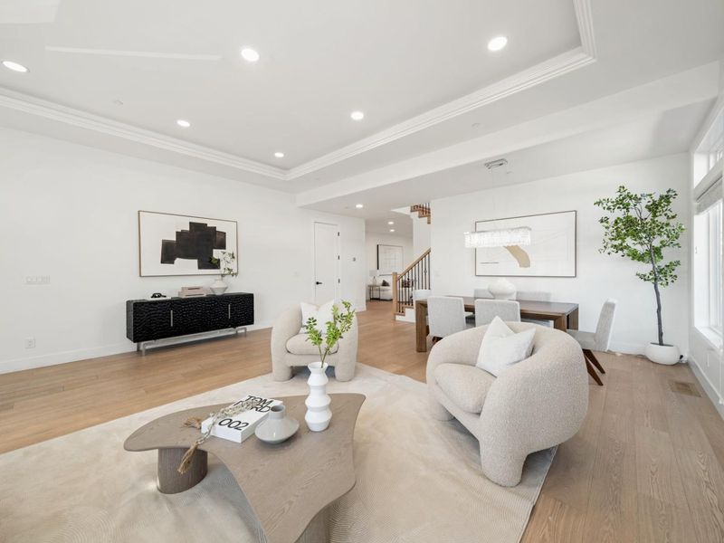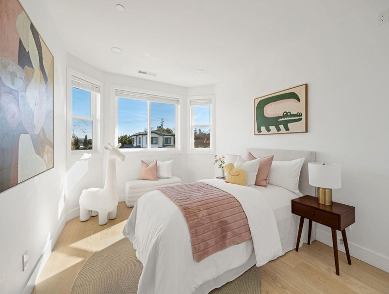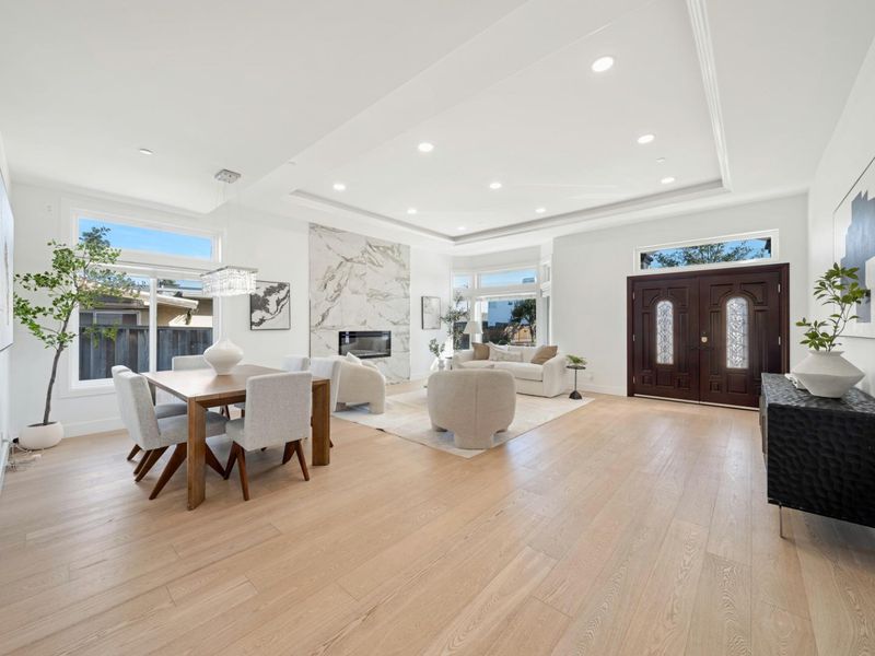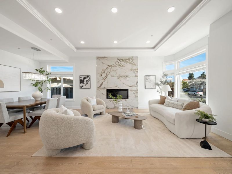 Completed in 2024, this stunning new construction in the heart of Cupertino seamlessly blends design with contemporary flair. This estate offers 2,758 sq. ft. of total living space, featuring a 2,221 sq. ft. main residence(3B3b) and a private 537 sq. ft. ADU(1B1b) - perfect for guests or rental income. The interior is a masterclass in craftsmanship, boasting soaring high ceilings, hardwood floors, and a graceful wooden staircase. The light-filled living room, anchored by a custom stone-veneered fireplace, creates an atmosphere of serene elegance. Culinary enthusiasts will gravitate toward the chefs kitchen, a true haven equipped with custom cabinetry, quartz countertops, a generous island, and a dramatic skylight. The primary suite serves as a tranquil retreat, featuring a spa-like bathroom with porcelain tile, a Porcelanosa shower system, and a standalone soaking tub. Efficiency is paramount with a fully paid-off solar power system, 3-zone climate control, and Nest thermostats. Outside, enjoy seamless indoor-outdoor living with a 346 sq. ft. covered back patio and a paved, low-maintenance yard. Situated just minutes from top-rated CU schools, the Apple Park campus, and Main Street dining, this home offers an unparalleled lifestyle in Silicon Valleys most coveted neighborhood.