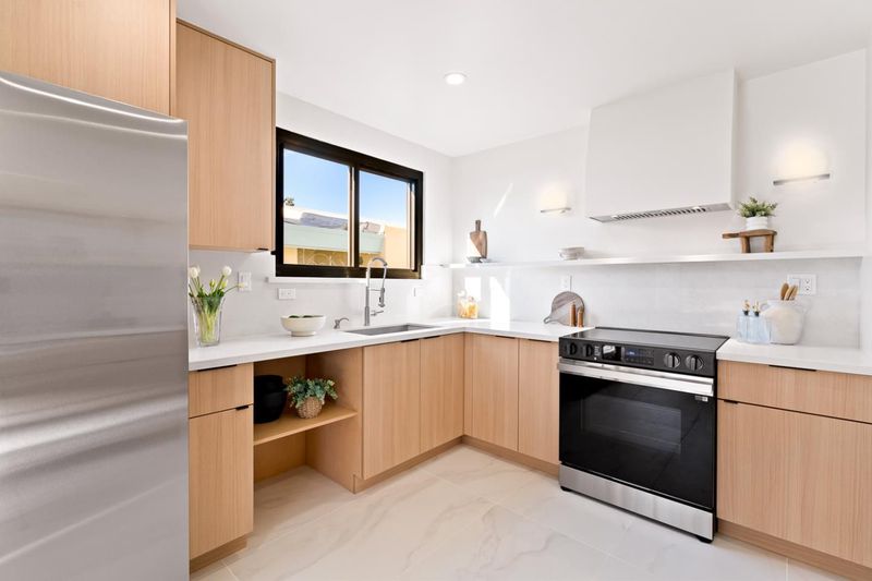 - Countertop - Quartz, Hood Over Range, Oven Range - Electric, Refrigerator