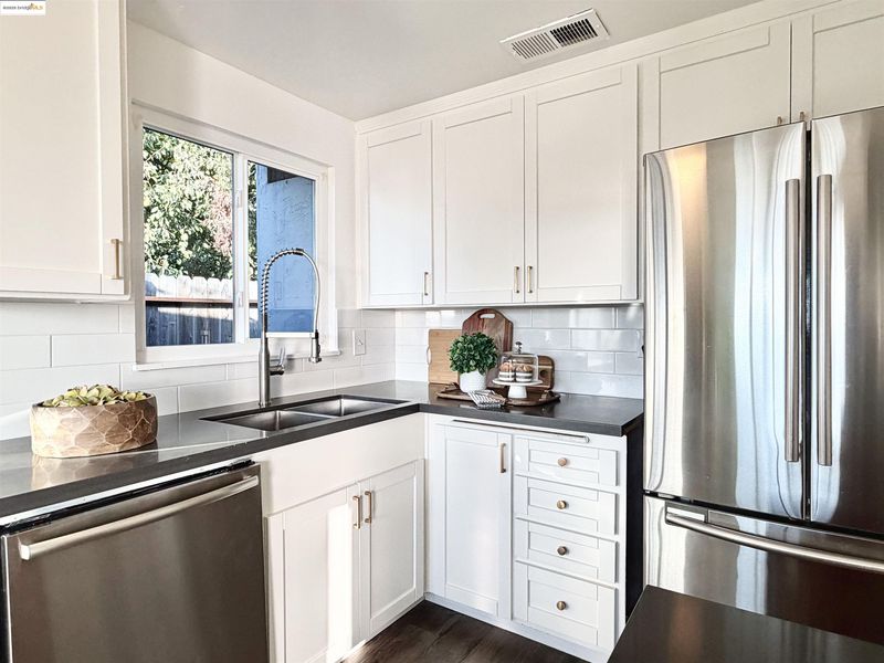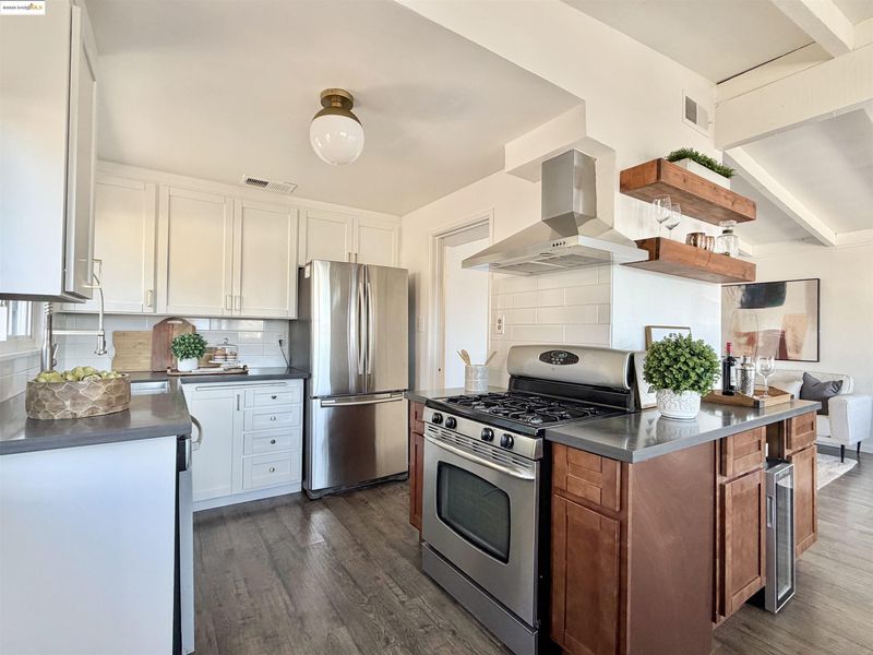 - Gas Range, Refrigerator, Dryer, Washer, Gas Water Heater, Stone Counters, Gas Range/Cooktop