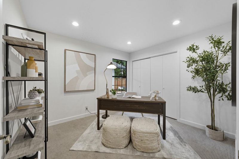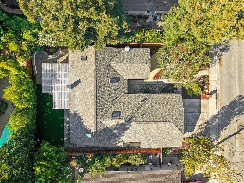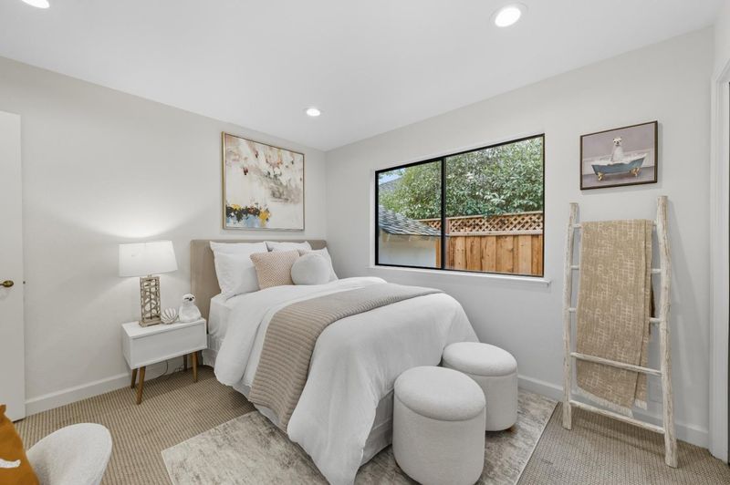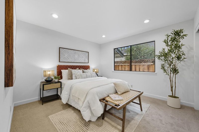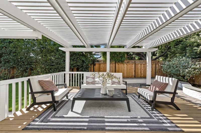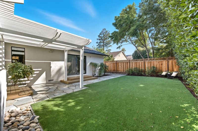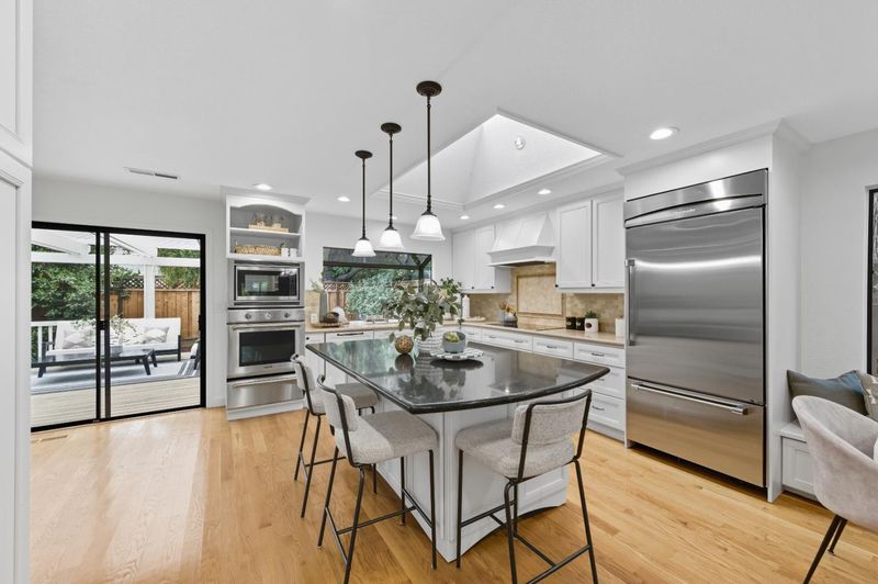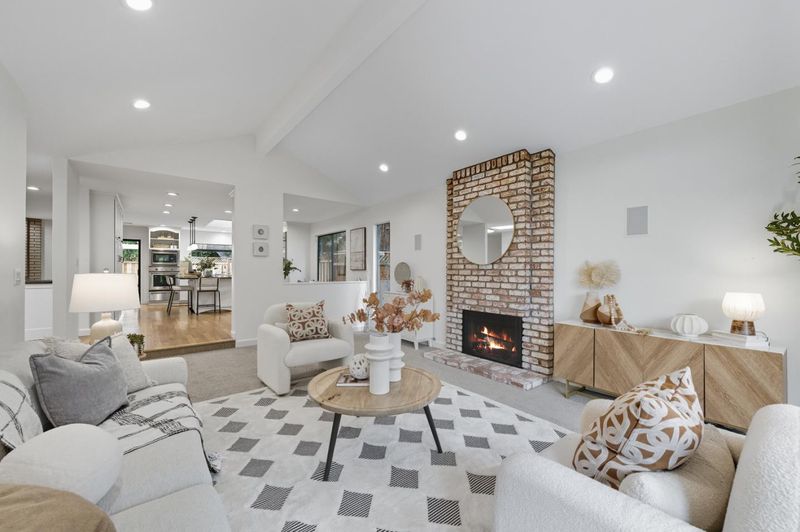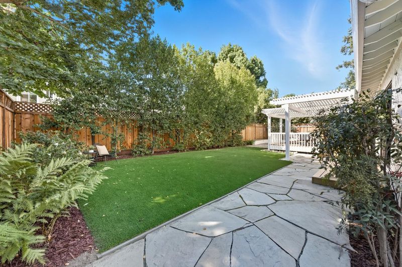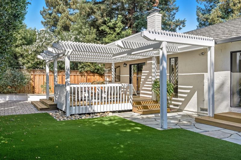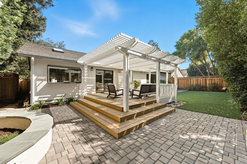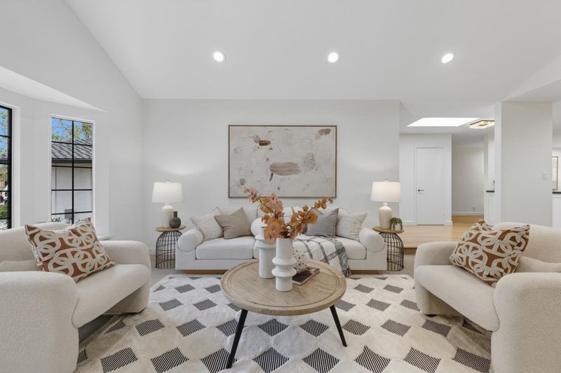 Stunning four-bedroom, two-and-a-half-bath showcase home brimming with natural light and thoughtful updates! Soaring vaulted ceilings, six skylights, and a remodeled kitchen with bay window, layered lighting, and cozy window seat create an airy, inviting atmosphere. The ideal single level layout includes a separate living room with charming window seats plus a great roomstyle kitchen family room, perfect for modern living and entertaining. A rare three-car garage and abundant storage add convenience. Step outside to a sun-drenched deck with pergola, a low-maintenance yard with artificial turf, and mature fruit treesMeyer lemon, pomegranate, and Anna applealongside a stately front oak tree. Perfectly located just steps from parks like Oak Elementary and its park, with easy access to Cooper & Cuesta Parks, Stevens Creek Trail, El Camino Hospital, and highways 85/280yet wonderfully peaceful and quiet. Welcoming neighbors, and possible history as the communitys showcase model make this home truly one-of-a-kind, offering the very best of Mountain View living.