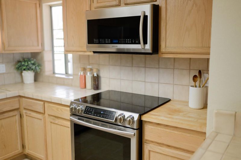 - Countertop - Tile, Dishwasher, Garbage Disposal, Hood Over Range, Microwave, Oven Range, Refrigerator