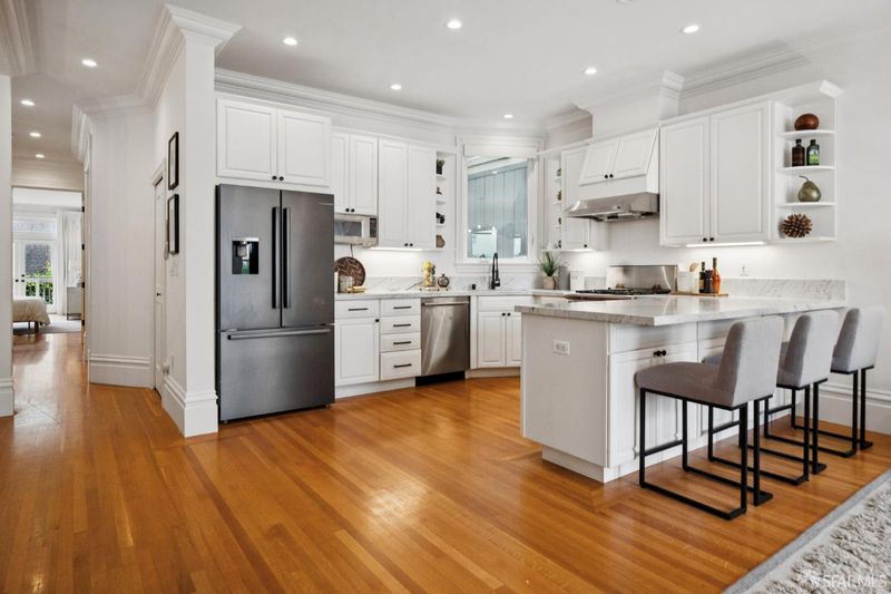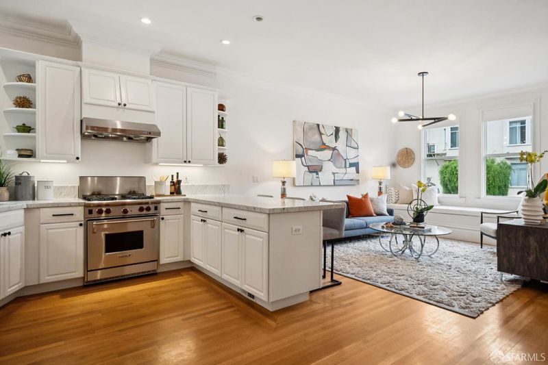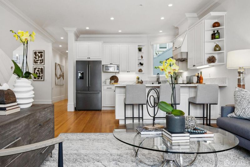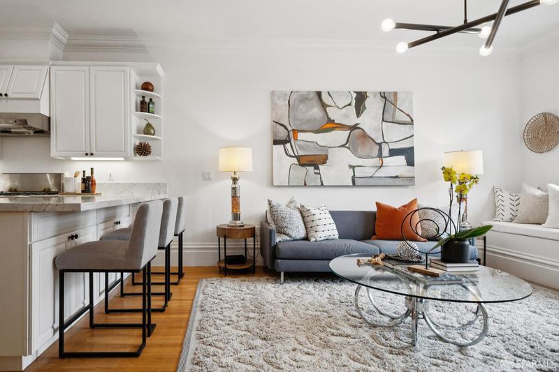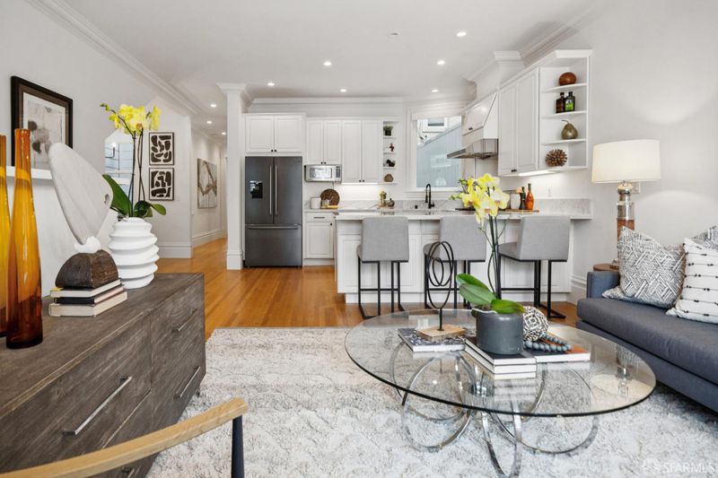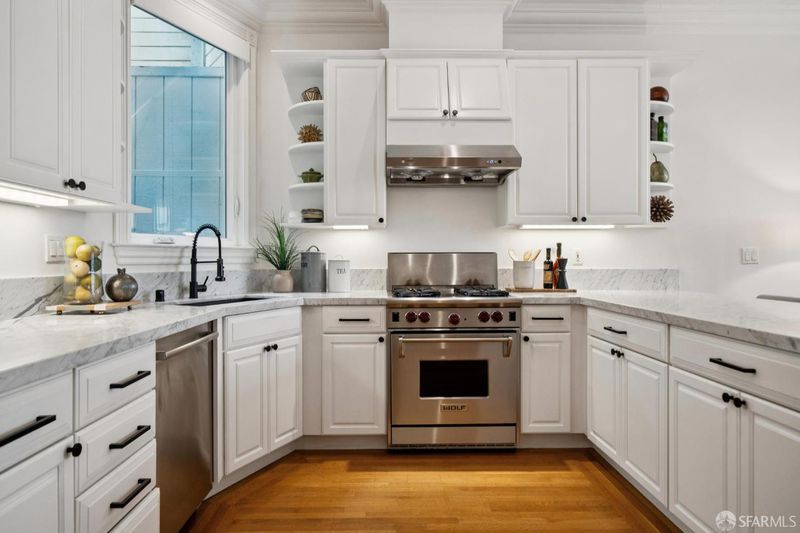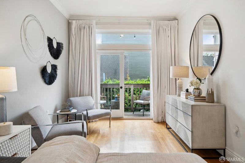 AAA+ location! Situated on an exclusive block of Sacramento Street, near Michelin-rated Spruce Restaurant, and close to designer boutiques, fine dining and coffee, 3583 Sacramento is a remodeled Presidio Heights condo offering a refined blend of timeless architecture and modern comfort. Extensively updated in a sophisticated style, this light-filled flat has tall ceilings, warm hardwood floors, and elegant period details. The open living room with window seat, dining area, and kitchen form one cohesive space ideal for entertaining. The redone kitchen features Carrara marble counters, a Wolf range, plentiful cabinetry, and a breakfast bar. The primary suite offers a spa-like shower w/dual sinks. French doors open to a south-facing private deck. The home has two add'l bedrooms with custom built-out closets. Fully remodeled 2nd bath with deep soaking tub. Add'l amenities: electric shades & curtains, dual shower heads, in-unit laundry, a big storage room that could serve as a home gym, one independent parking space, low HOA dues of $350/month, and the convenience of minimal steps to the front door. There is a sheltered, landscaped yard just steps from the back door. Nearby Laurel Village is a bonus with its wide assortment of stores. This is the full package - checks all the boxes!
