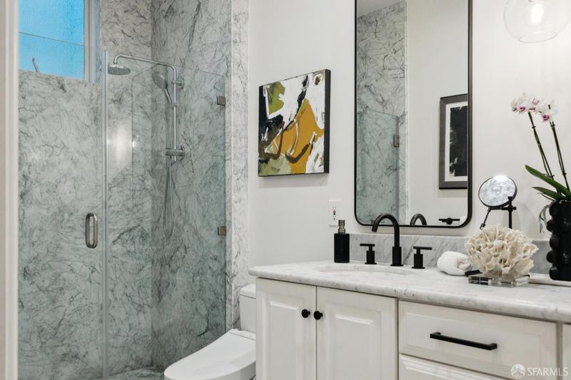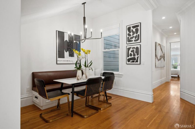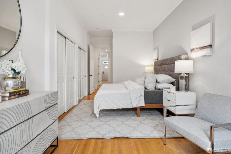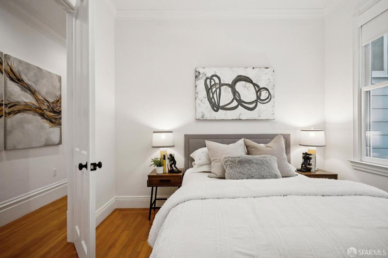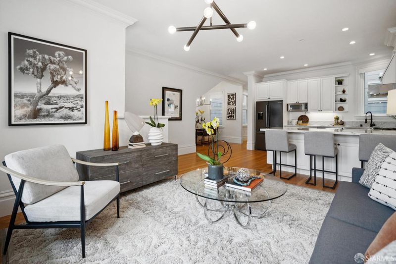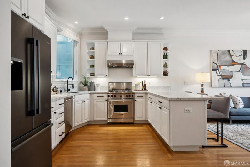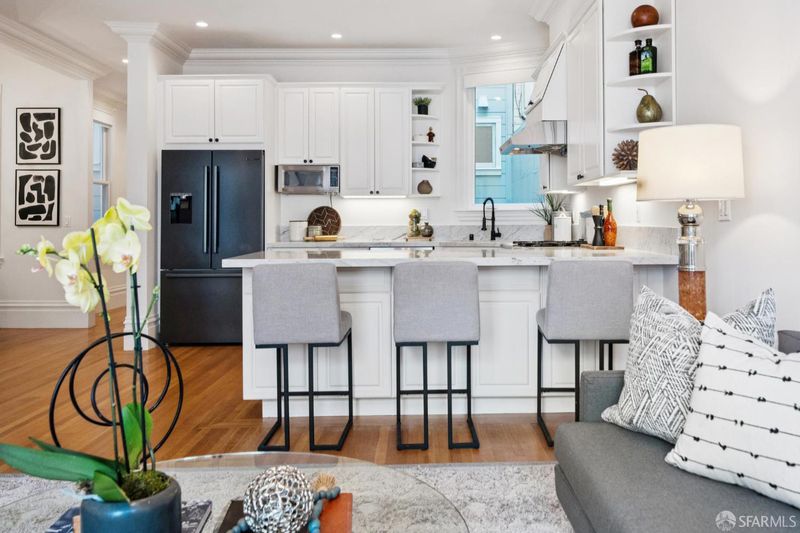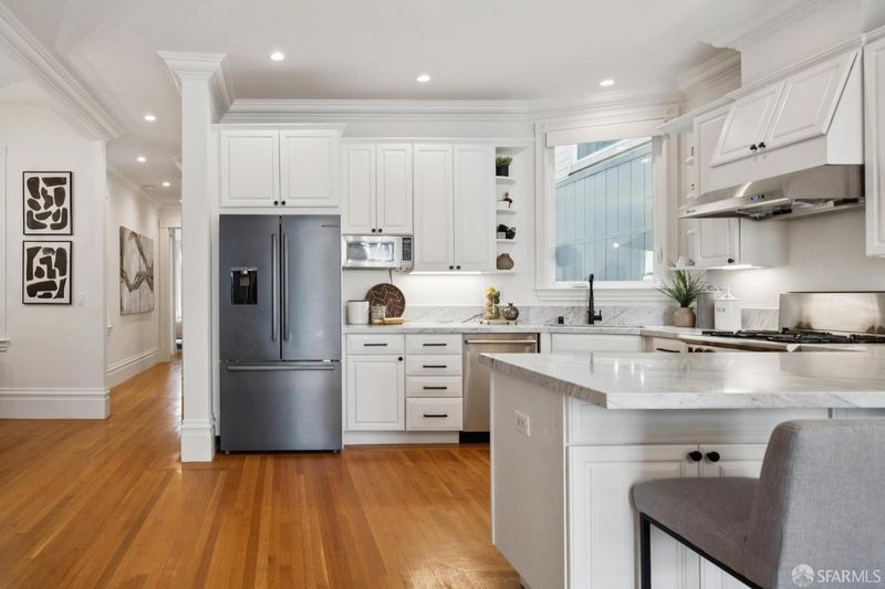 AAA+ location! Situated on an exclusive block of Sacramento Street, near Michelin-rated Spruce Restaurant, and close to designer boutiques, fine dining and coffee, 3583 Sacramento is a remodeled Presidio Heights condo offering a refined blend of timeless architecture and modern comfort. Extensively updated in a sophisticated style, this light-filled flat has tall ceilings, warm hardwood floors, and elegant period details. The open living room with window seat, dining area, and kitchen form one cohesive space ideal for entertaining. The redone kitchen features Carrara marble counters, a Wolf range, plentiful cabinetry, and a breakfast bar. The primary suite offers a spa-like shower w/dual sinks. French doors open to a south-facing private deck. The home has two add'l bedrooms with custom built-out closets. Fully remodeled 2nd bath with deep soaking tub. Add'l amenities: electric shades & curtains, dual shower heads, in-unit laundry, a big storage room that could serve as a home gym, one independent parking space, low HOA dues of $350/month, and the convenience of minimal steps to the front door. There is a sheltered, landscaped yard just steps from the back door. Nearby Laurel Village is a bonus with its wide assortment of stores. This is the full package - checks all the boxes!