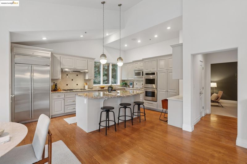 - Dishwasher, Gas Range, Microwave, Oven, Refrigerator, Dryer, Washer, Stone Counters, Eat-in Kitchen, Gas Range/Cooktop, Kitchen Island, Oven Built-in
