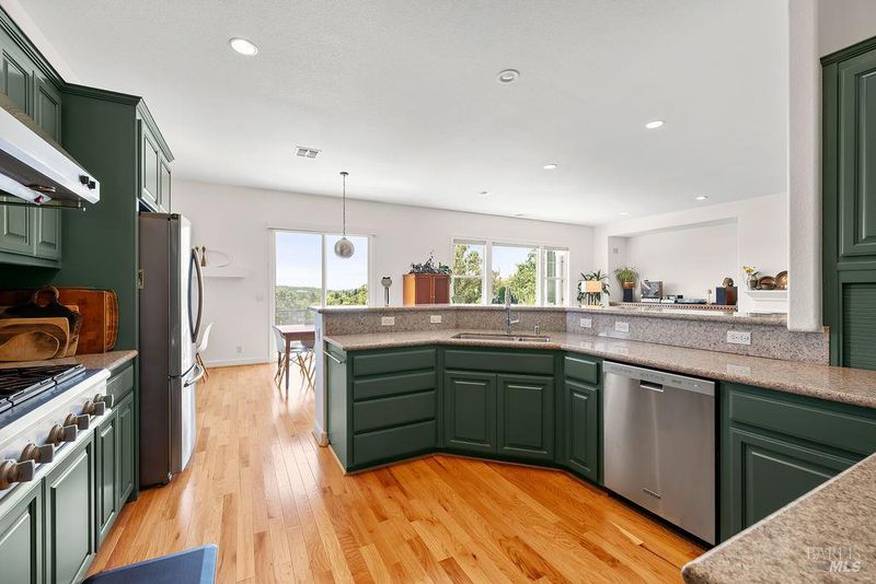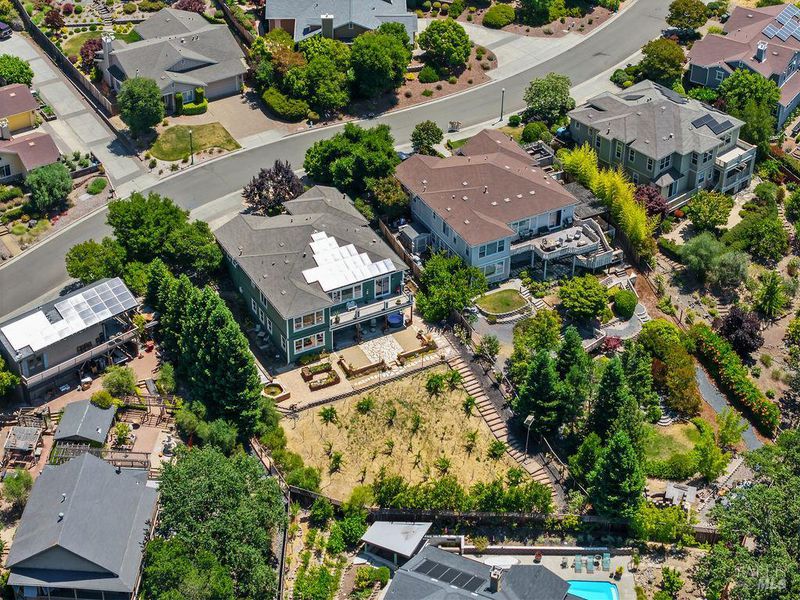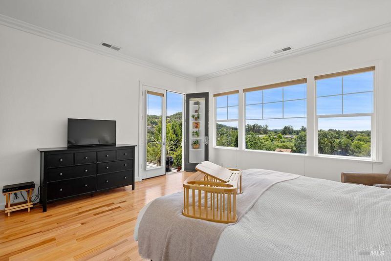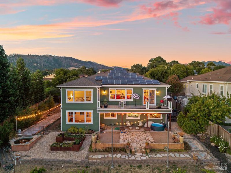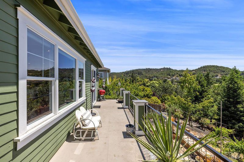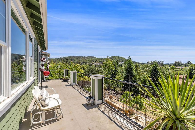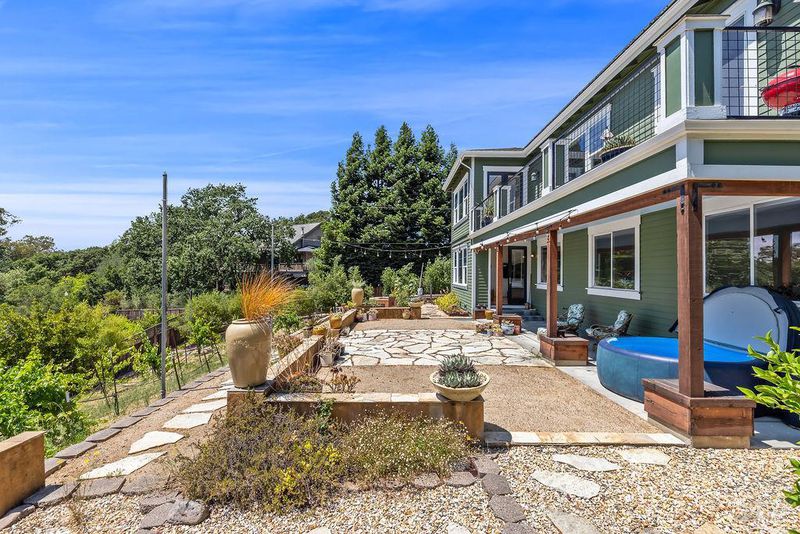 Spectacular views, serene privacy, and plenty of space. This 5-bedroom, 4-bathroom home offers 3,760 sq. ft. of thoughtfully designed living space on just under half an acre, with sweeping panoramic views of Annadel Park. Refined finishes inside and a backyard designed for relaxation and entertainment, featuring a beautiful patio, hobby vineyard, lush garden, bocce court, and serene pond. On the main level, the spacious primary suite opens to a deck with spectacular views perfect for a peaceful morning coffee or sunset unwind. The kitchen features GE Monogram stainless steel appliances and granite counters, flowing into a great room with tall ceilings, hardwood floors, and a cozy gas fireplace. There's a separate living space on the main level with its own fireplace and an adjacent dining room. The lower level includes a second en suite bedroom, three additional bedrooms, and a media/yoga/play room. There's a finished basement thoughtfully outfitted for home wine-making. Paid solar, updated HVAC system, 3 car garage. Step outside to enjoy a beautifully designed hardscape patio, a hobby vineyard, raised garden beds, a bocce court, and a tranquil pond. Located near great parks and in the highly-rated Rincon Valley School District with Austin Creek Elementary.