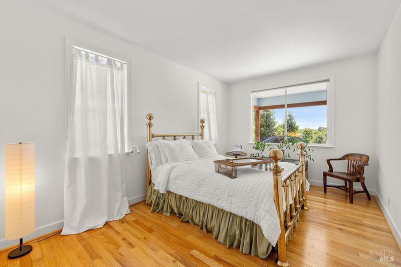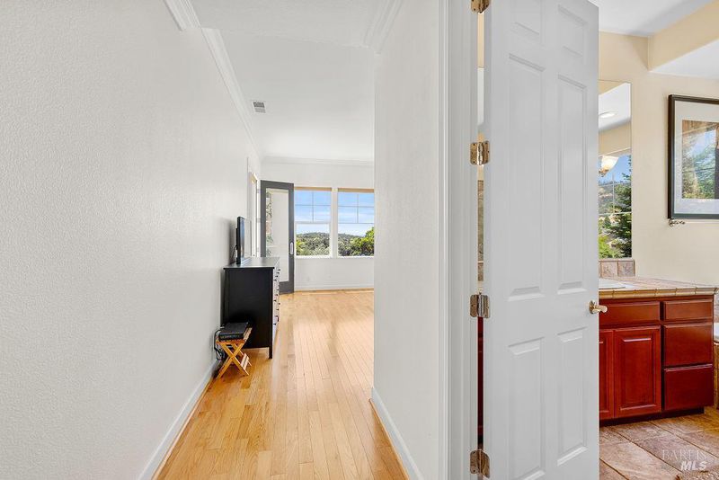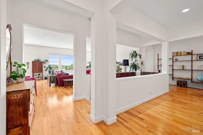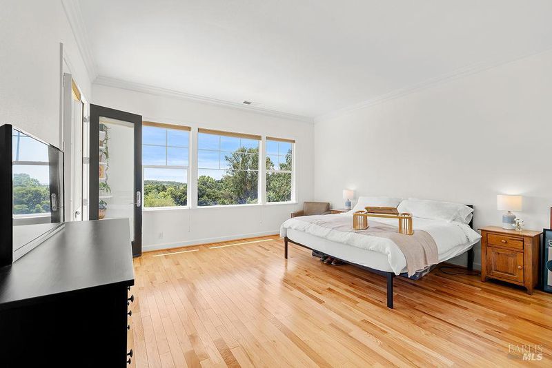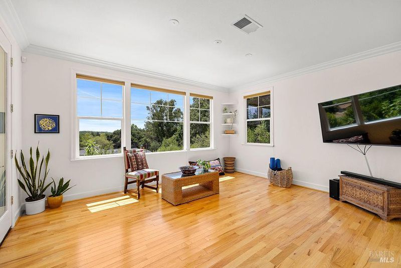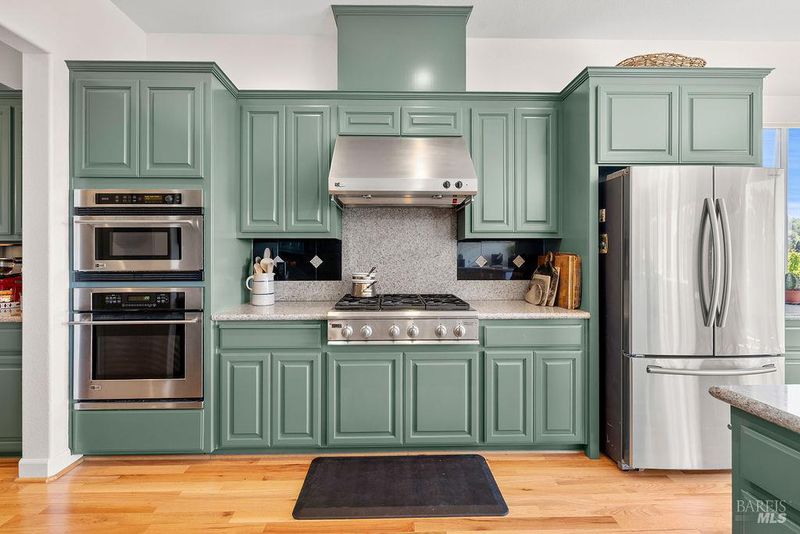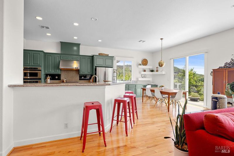 Spectacular views, serene privacy, and plenty of space. This 5-bedroom, 4-bathroom home offers 3,760 sq. ft. of thoughtfully designed living space on just under half an acre, with sweeping panoramic views of Annadel Park. Refined finishes inside and a backyard designed for relaxation and entertainment, featuring a beautiful patio, hobby vineyard, lush garden, bocce court, and serene pond. On the main level, the spacious primary suite opens to a deck with spectacular views perfect for a peaceful morning coffee or sunset unwind. The kitchen features GE Monogram stainless steel appliances and granite counters, flowing into a great room with tall ceilings, hardwood floors, and a cozy gas fireplace. There's a separate living space on the main level with its own fireplace and an adjacent dining room. The lower level includes a second en suite bedroom, three additional bedrooms, and a media/yoga/play room. There's a finished basement thoughtfully outfitted for home wine-making. Paid solar, updated HVAC system, 3 car garage. Step outside to enjoy a beautifully designed hardscape patio, a hobby vineyard, raised garden beds, a bocce court, and a tranquil pond. Located near great parks and in the highly-rated Rincon Valley School District with Austin Creek Elementary.