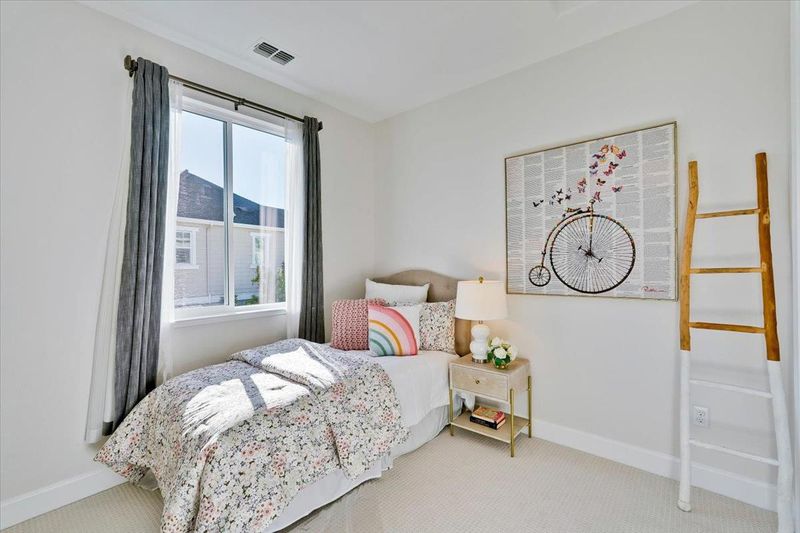 Gorgeous Newer End Unit TH with Los Altos High. Beautiful, tree-lined setting cradles this spacious 4 bed, 3. 5 bath TH in the heart of Mountain View. Ground floor suite features a private bathroom and double French doors that open to a sunny courtyard, suggesting a more spacious and comfortable experience. Perfect for in-laws, guests, a home office, or rent it out for extra income. Gourmet chefs kitchen, wood cabinets, quartz counters, premium stainless-steel appliances with an oversized island. kitchen, dining and living room open concept great for entertaining guests. Primary bedroom suite with a walk-in Closet. Solar installed by HOA, Central AC, double pane windows, recessed lighting. Inside laundry/ Attached two- car garage. Walking distance to google campus through Permanente Creek Trail / 4 mins drive to Costco. Convenient to shopping, freeway access, and major techs