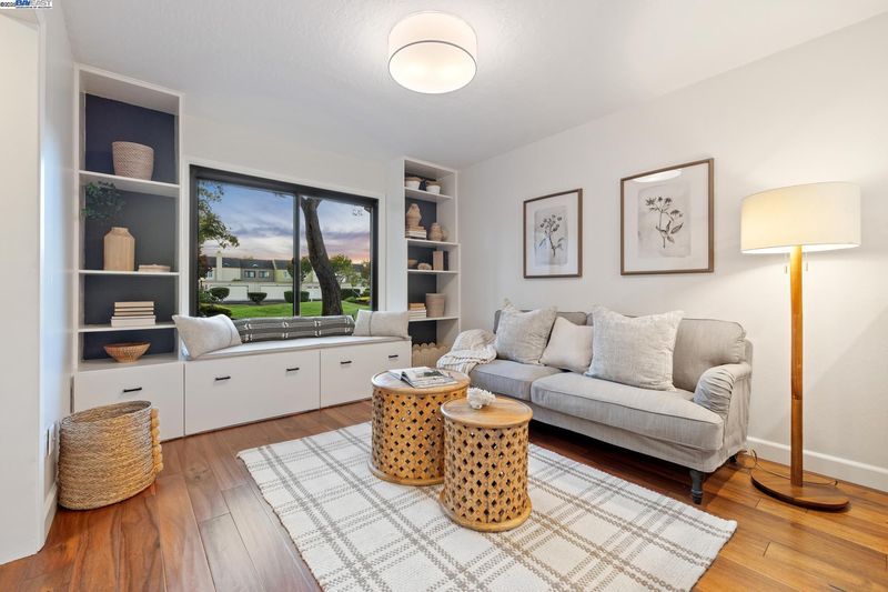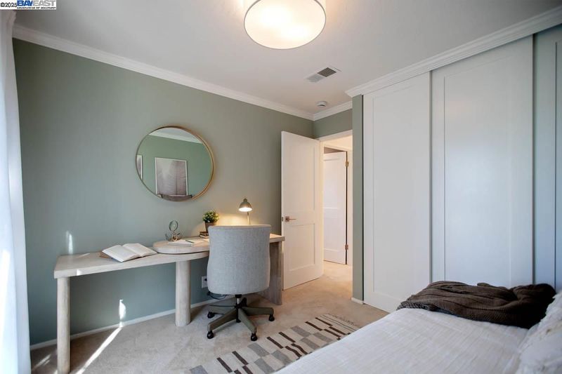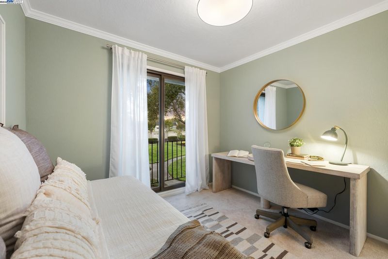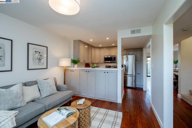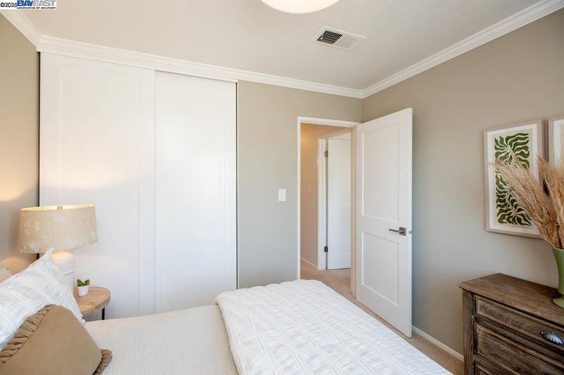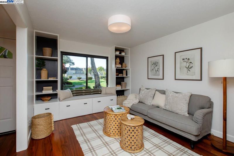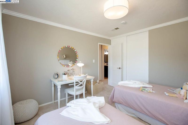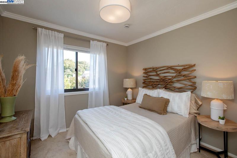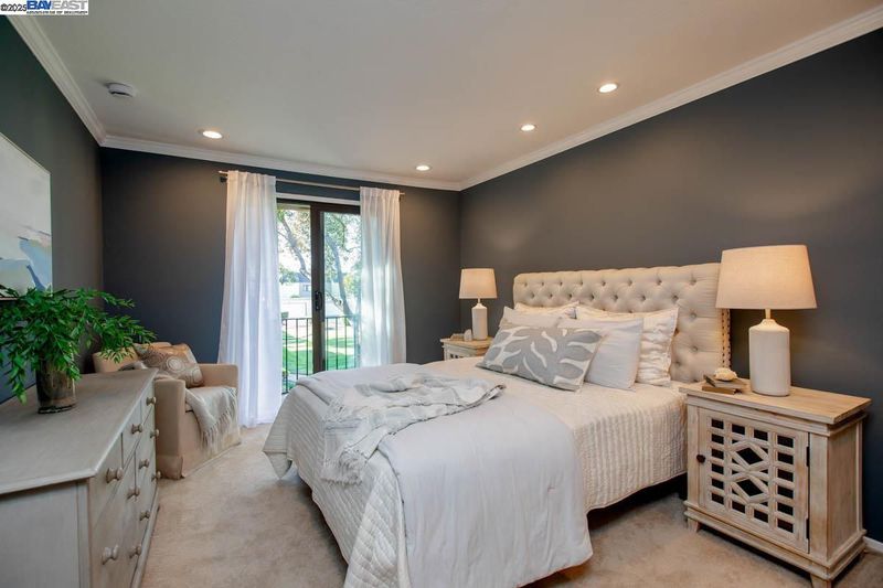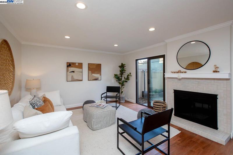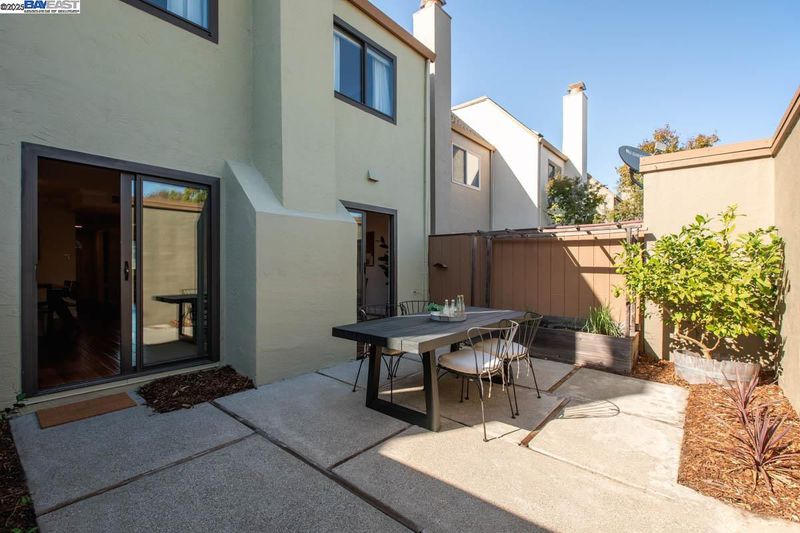 Located in Bay Farm Island's well-established Casitas HOA community, this attractively updated 2-story townhome is literally just minutes to highly ranked schools, Harbor Landing shopping (Safeway/Starbucks), the SF Bay trail and the SF Ferry for a unique and effortless commute into San Francisco. Unusually spacious at 1,628 square feet (per public records), the home features 4 bedrooms, 2.5 bathrooms, a living room/dining room combination, laundry room, an open kitchen/family room, a 2-car garage with custom storage cabinets, and a private patio/garden. Features include crown moulding, dual-pane windows, a fireplace, engineered hardwood floors on the main level, and new light fixtures and a freshly painted interior throughout (both 2025). The kitchen and bathrooms were updated with attractive, timeless finishes and materials. The large primary bedroom has an ensuite divided bathroom plus sliding doors that open to a Juliet balcony and provide a view of the common area's well-maintained and attractive landscaping and pathways. All bedrooms have nearly new carpeting (2021), and closets with custom organizers for plenty of storage. HOA amenities include a community pool, clubhouse, and playground. Enjoy resort-like living from this move-in-ready home in a desirable Bay Farm Island