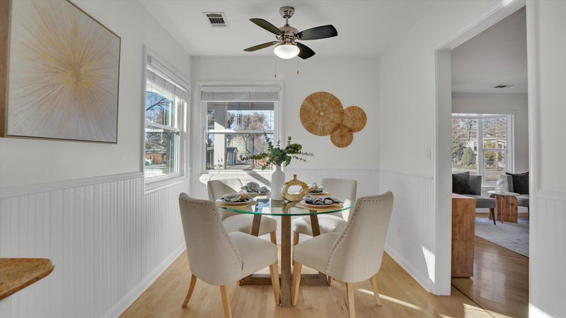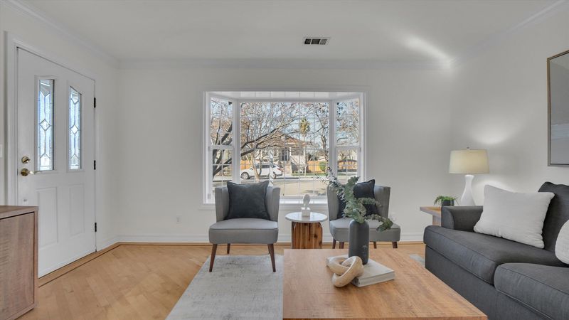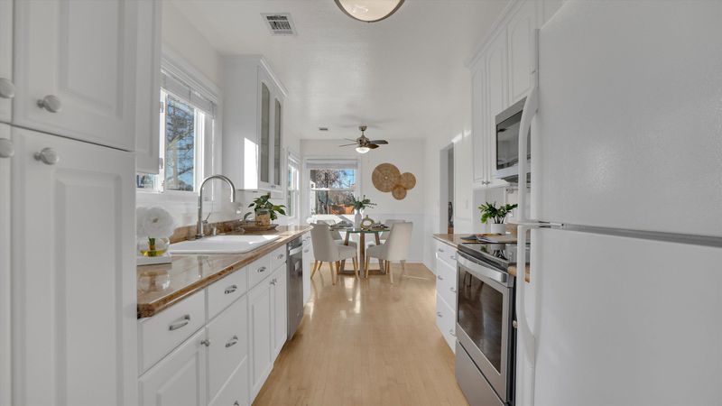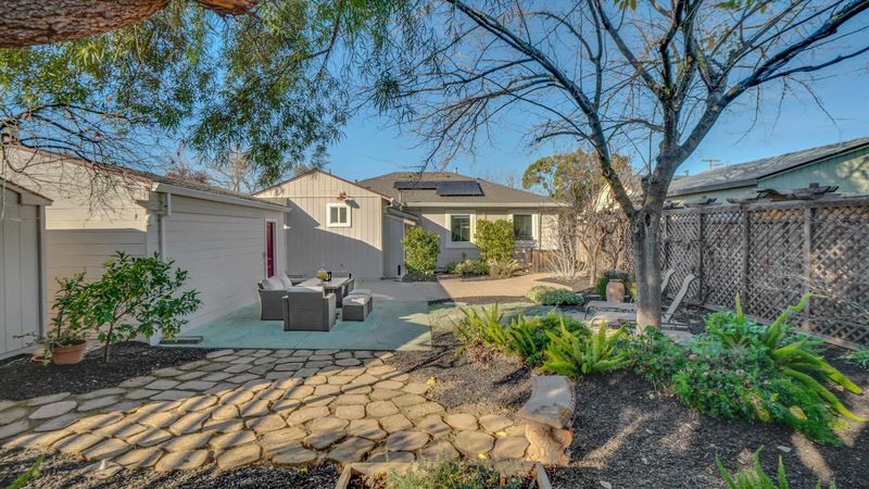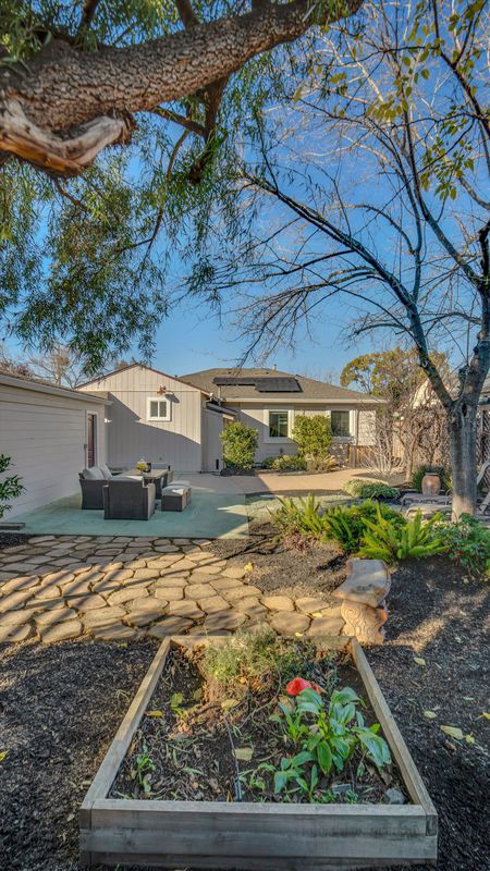 Fall in love with this beautifully updated 3-bed, 2-bath gem located in the heart of Livermore. This darling home radiates warmth from the moment you step inside, featuring a spacious, oversized living room accented by gleaming hardwood floors and elegant crown molding. The floor plan leads effortlessly into a bright white kitchen, complete with upgraded appliances, with an attached dining area. Enjoy the large interior laundry room, renovated bathrooms with bidet, and a detached garage perfect for a workshop or extra storage. Step outside to your private backyard oasis—a true sanctuary featuring a canopy of mature shade trees, rustic pathways, grape vines, plum, lemon, fig, apple trees, and an expansive patio ready for weekend BBQs, just in time for the spring bloom. Situated in a prime location just a short stroll from downtown Livermore, you can enjoy easy access to local dining, the Sunday farmers’ market, the Bankhead Theater, and more. This is truly the most charming home in the neighborhood—don’t miss it!