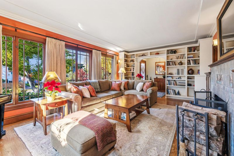 Located in Alameda’s coveted Fernside neighborhood, this Mediterranean-style home blends timeless character with thoughtful updates. Built in 1930, it offers 3 bedrooms, 2 bathrooms, approximately 1,690sf of living space on a 4,536sf lot, just moments from top schools and Park Street’s shops and restaurants. The inviting living room features a classic tiled fireplace, discreet widescreen TV, built-in cabinetry, wood floors, crown molding and preserved wood trim, filled with natural light. The adjacent dining room showcases period details, wood floors and large multi-pane windows. The kitchen offers wood cabinetry, updated granite countertops, an island, and stainless steel appliances including a professional-style gas range and French door refrigerator. The main level bathroom makes a bold statement with blue floral wallpaper, crisp white finishes, and a tiled tub-and-shower. Additional highlights include a custom laundry room, a versatile garage with polished concrete floors and a serene backyard with patio, bistro lights and mature landscaping. Recent updates include a refinished downstairs bedroom and bathroom, restored primary bedroom windows, replaced garage door and furnace and restored dining room wood floors. A true gem for today's discerning buyer. Open Sat Sun 12-4