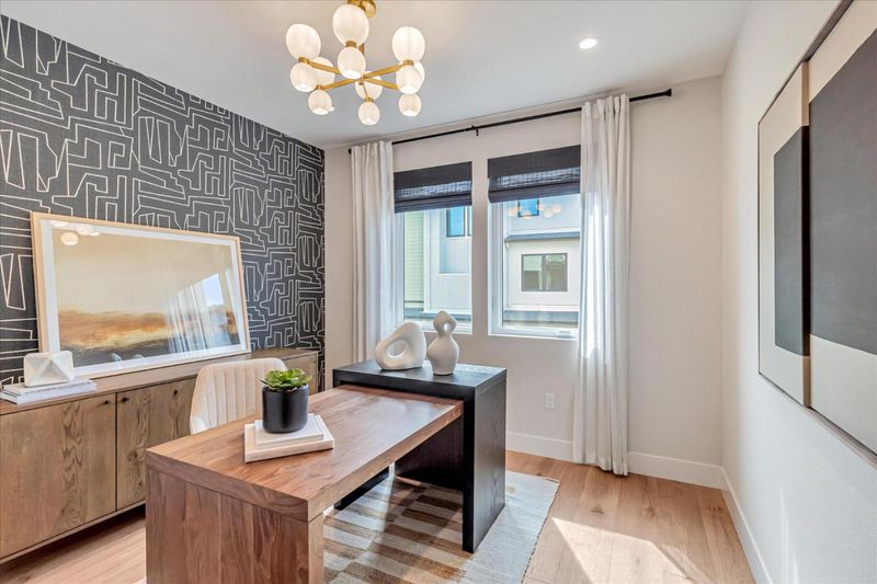 Brand-new, thoughtfully designed townhome offering 3 bedrooms and 3 full bathrooms across 1,436 sq. ft. of modern living space. This Plan 1 layout features a bright open-concept floor plan, ideal for both relaxing and entertaining. Bedroom 3 is conveniently located on the second floor near the kitchen and living area, perfect as a home office or guest suite. Designer-selected finishes valued at over $42K include Bosch appliances, soft-close white flat-panel cabinetry, and LED recessed lighting throughout. A popular choice among first-time buyers and small families alike. Located in 28Fifty by award-winning builder SummerHill Homes, a newly built community of 48 townhomes centered around a private community park. Situated in Palo Alto's desirable Midtown neighborhood, ranked the 17th most walkable in the city. This location offers convenient access to shopping, dining, parks, and transit. Zoned for top-rated schools: Palo Verde Elementary, J.L. Stanford Middle, and Palo Alto High. Don't miss your opportunity to own a brand-new home in one of Silicon Valley's most sought-after cities! Interior photos are of model home. Move-in-Ready! Schedule your tour today!