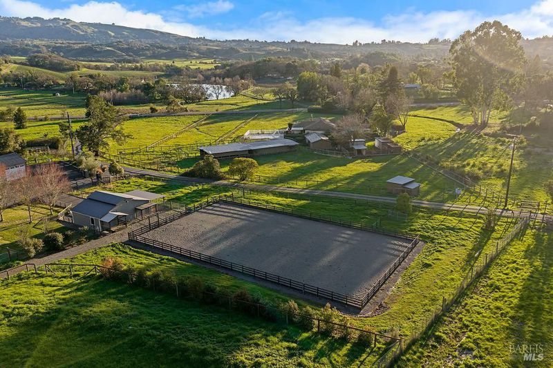 Nestled on nearly 4 pristine acres just outside Santa Rosa, this stunning property offers the best of Sonoma County living, where high-end craftsmanship meets open space and modern luxury blends with nature. The extensively remodeled main home features Sierra Pacific windows, engineered hardwood floors, custom woodwork, and Levolor blinds. The chef's kitchen includes granite countertops, a maple butcher block island sourced from Kentucky, Sub-Zero fridge, Wolf range, Viking dishwasher, and a huge walk-in pantry all centered around a dramatic Extraordinaire fireplace. Outside, you'll find: A newer shop ideal for guests, rental, or creative use. Immaculate breezeway barn with 4 stalls, tack room, wash rack, and storage loft. Fenced arenas and pastures. RV hookups with water, power, and septic. 3-car garage, fruit trees and wide-open skies complete the scene. Infrastructure includes a 4,000-gallon water tank with new pump house, 400-amp power, freshly paved driveway, and a $200K+ drainage system by Adobe Associates and a backup generator that powers everything in the house, shop, barn, and property! Whether you're an equestrian, hobbyist, or remote-working dreamer, this is a retreat with room to grow.