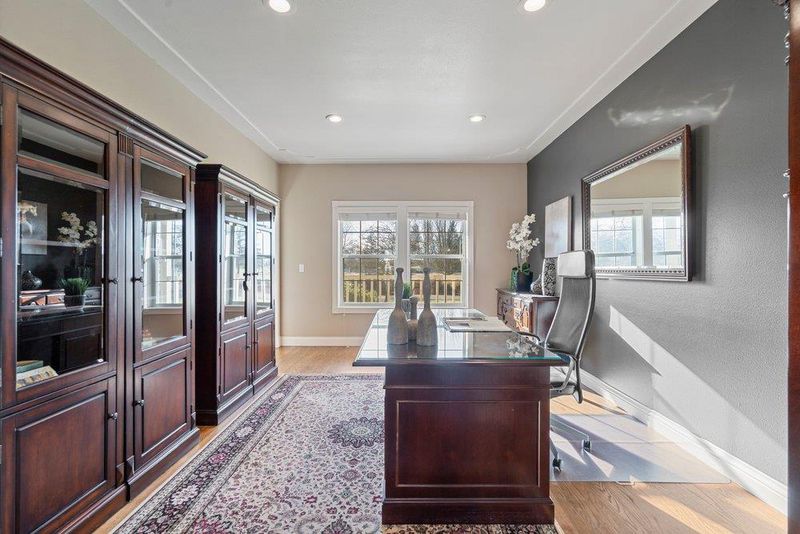 5-ACRE EQUESTRIAN ESTATE Experience the pinnacle of country luxury in this turnkey 3,645 sq. ft. estate, perfectly positioned on 5 pristine acres. Thoughtfully designed and impeccably maintained, this 5-bedroom, 2.5-bath residence blends sophisticated modern upgrades with top-tier equestrian facilities. The heart of the home is a gourmet chefs kitchen featuring quartz countertops, crisp white cabinetry with modern black hardware, and a suite of premium appliances including a Wolf 5-burner cooktop and KitchenAid double ovens. The main-level primary suite serves as a private sanctuary with a cozy gas fireplace and direct access to the grounds. Entertain in style in the expansive game room and wine bar. Outside, owned solar, a sparkling inground pool with a fully fenced backyard. For the equestrian, the grounds are unmatched: a 7-stall barn with runs, a dedicated tack room, hay/tractor storage, a sand arena, and five separate pasture turnouts. Additional highlights include a 2025 refrigerator, dual-zone HVAC, whole-house water filtration with reverse osmosis, and a flexible bonus space ideal for an ADU or multi-generational living. Located within walking distance of the distinguished Spring Grove School, this is a rare opportunity to own a self-sustaining luxury retreat.
