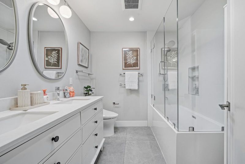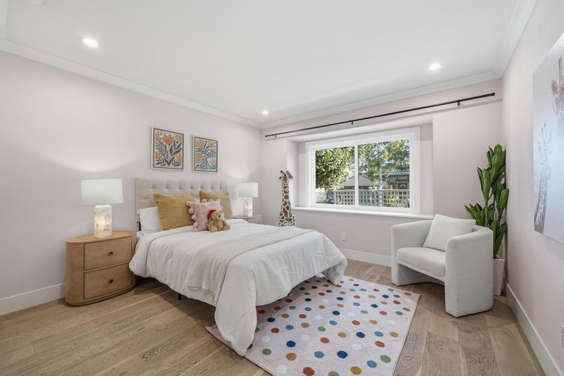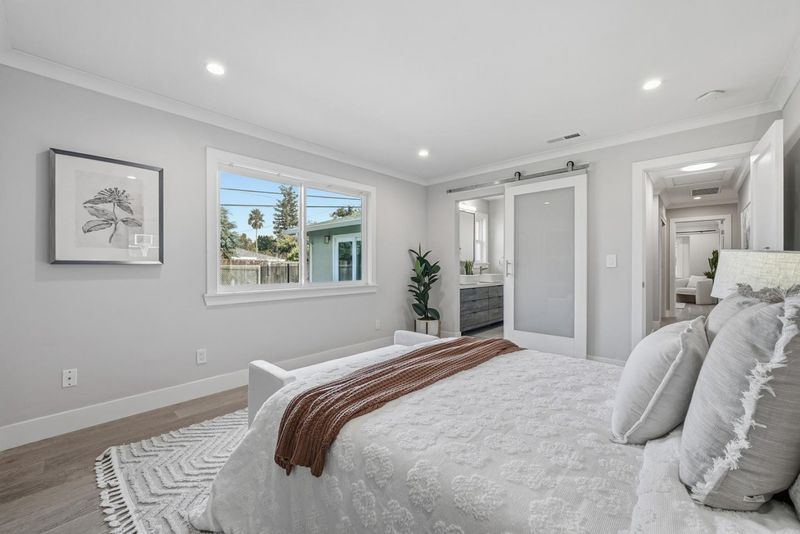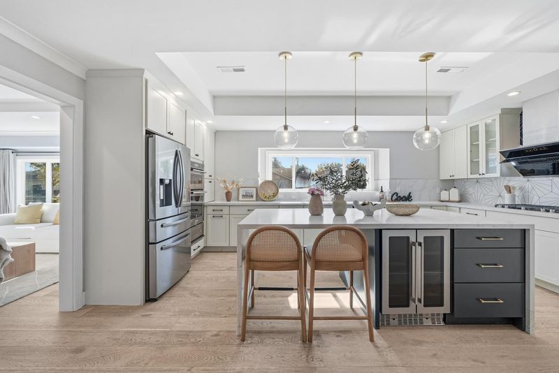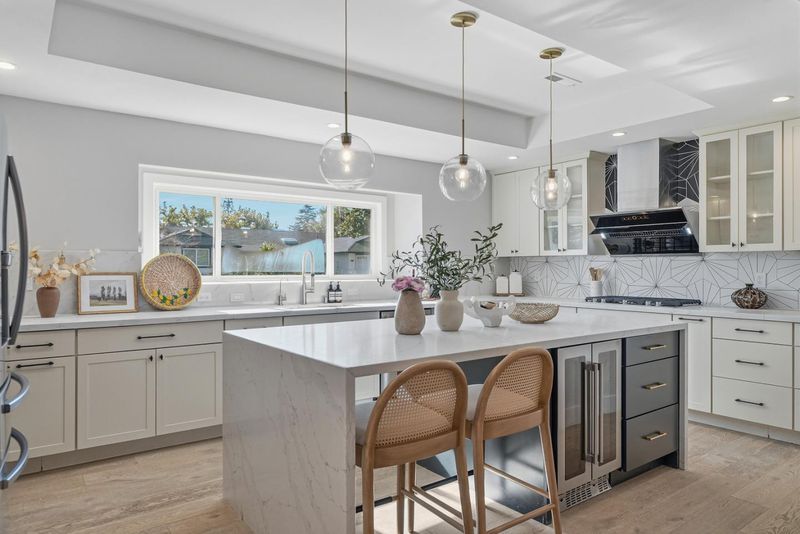 Thoughtfully expanded and renovated in 2020, this 4b3.5b residence offers 2,537 Sqft of refined, step-free living on an 8,800 sq ft lot in one of Sunnyvales most prestigious neighborhoods. A 10-foot-high foyer welcomes you into sun-filled living spaces framed by east- and south-facing windows. The south-facing gourmet kitchen features an oversized island, premium American cabinetry, and fully integrated Oven and Microwave, flowing seamlessly into elegant living and dining areas with a motorized skylight. The impressive 500 sq ft family room with 10-foot ceilings, custom 9-foot built-in bookshelf, private half bath, and independent AC creates a sophisticated space for working, entertaining. Two en-suite bedrooms offer ideal accommodations for guests or multi-generational living. The landscaped front yard showcases mature fruit trees, roses, and lavender, while the resort-style, low-maintenance backyard features extensive hardscape, artificial turf, storage space and new fences (2022). Whole-home water softening and tankless water heater systems enhance everyday comfort. Ideally located within walking distance to West valley elementary schools and Cupertino middle, parks, and Harker transportation, with easy access to Highway 85 and Silicon Valleys leading technology campuses.