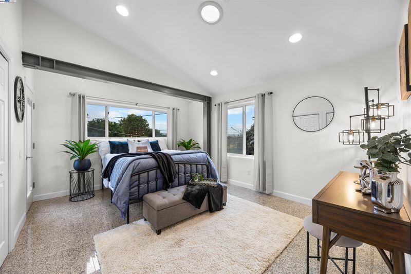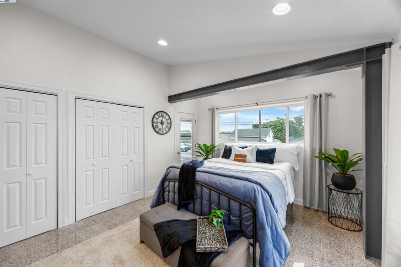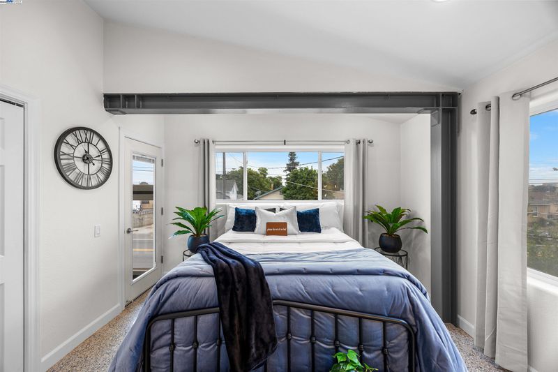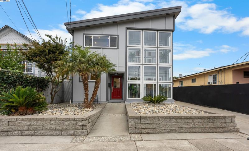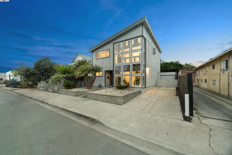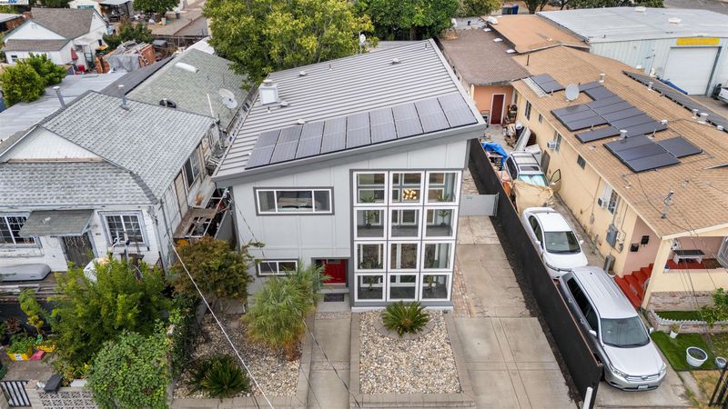Years ahead of its time, this custom smart home was eco-friendly before green was IN! With a distinctive facade & dramatic metal skillion roof, this permitted whole home reconstruction features newer industrial decor finishes, steel I-beam & concrete slab engineering, dual zone hydronic radiant heat system & a south-facing solar atrium for passive heating. Hard-ethernet wired enabled for computerized network automation! Anchored by new LVT flooring, the main level urban/loft aesthetic is evident in an expansive kitchen with the cobalt blue cabinets & stainless steel appliances. The indoor mech room houses an eco-conscious boiler system, washer & dryer. The upper level is a 2-bed, 1-bath sanctuary perched aloft a vast open atrium. Sited on a deep lot w/generous setbacks, the freshly re-roofed oversized garage/workshop is a haven of possibilities for the car, shop, rec or small business enthusiast. Develop the property & envision live/work living or an ADU (buyer to verify). Zero pest, low maintenance grounds, plentiful off-street parking & generous side yard for a possible dog/pet run keep stress to a minimum! Central access to BART, downtown, Marina Square, freeways, airport & bridges!