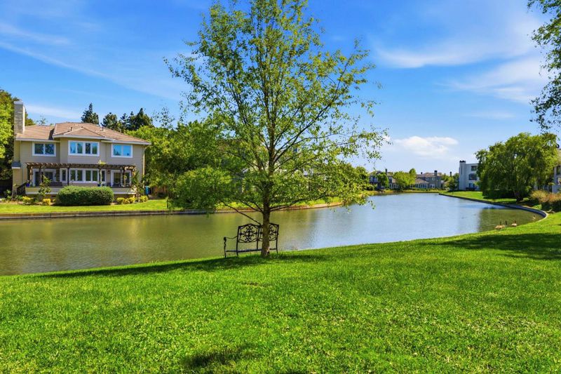 Experience nature and serenity as you step into this spacious, chic, top-floor, single-level, corner condo with views of green foliage and meandering waterways. Dramatic vaulted ceilings, skylights, and picture windows flood the home with natural light. The living room flows to one of two balconies overlooking the water and is great for entertaining or unwinding. The primary bedroom is oversized with soaring ceilings, wall-to-wall closets, and a secondary fireplace. Both bathrooms were just remodeled with brand new vanities, tile floors, sinks, faucets, and light fixtures. The kitchen features a breakfast nook and pantry and the dining area has a new chandelier. The walls have been freshly painted and new cozy Berber carpets were just installed. There is convenient side-by-side laundry in the hall. One assigned parking spot and storage closet are located in the shared, gated, garage just below the unit. The complex has a clubhouse and 2 swimming pools with jacuzzis for residents to enjoy along the water. Shorebird Circle in Redwood Shores is close to shopping, restaurants, daily essentials, bay front walking trails and cycling paths. Located in Silicon Valley, the Shores offers easy access to internationally recognized companies, major commuting routes, and highly ranked schools.