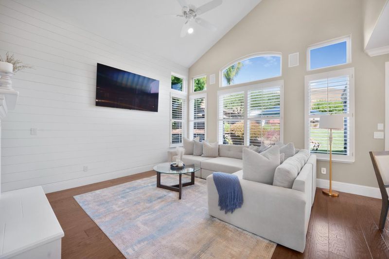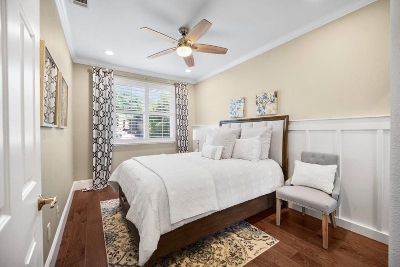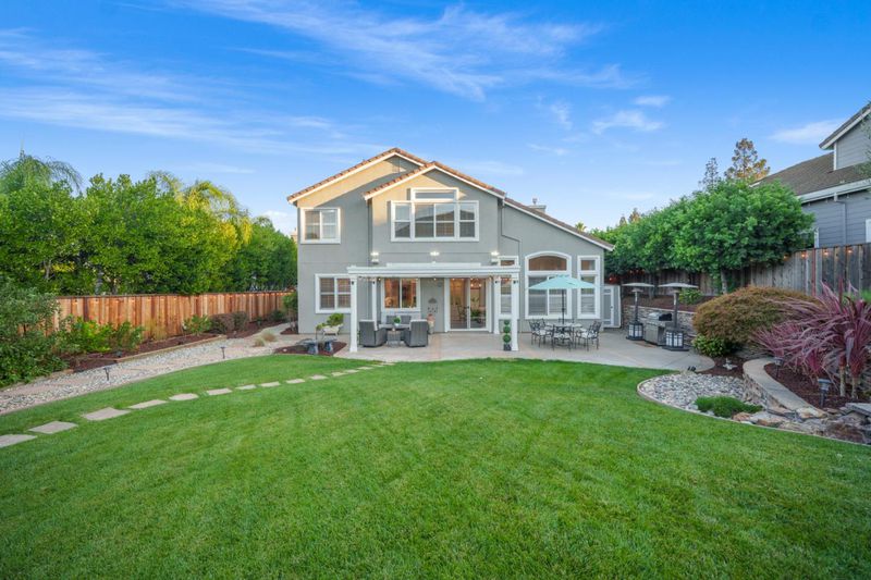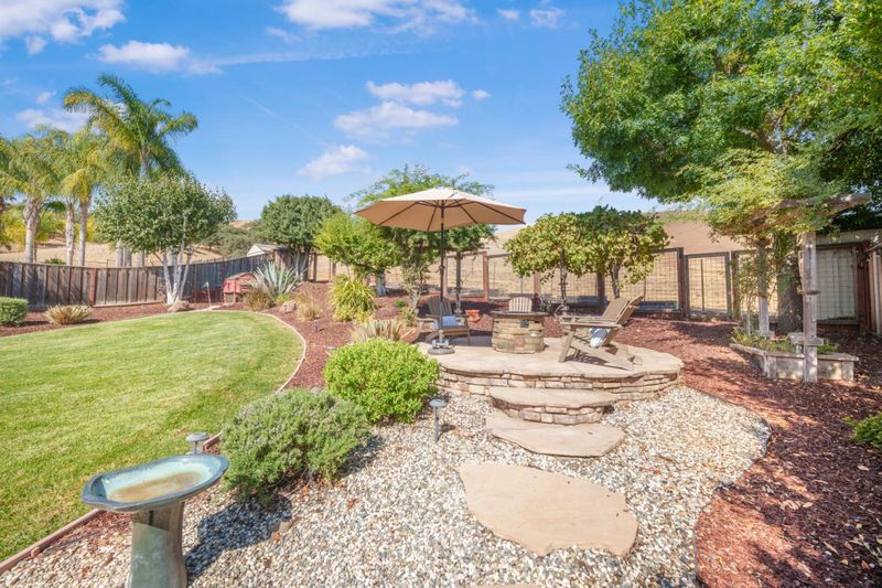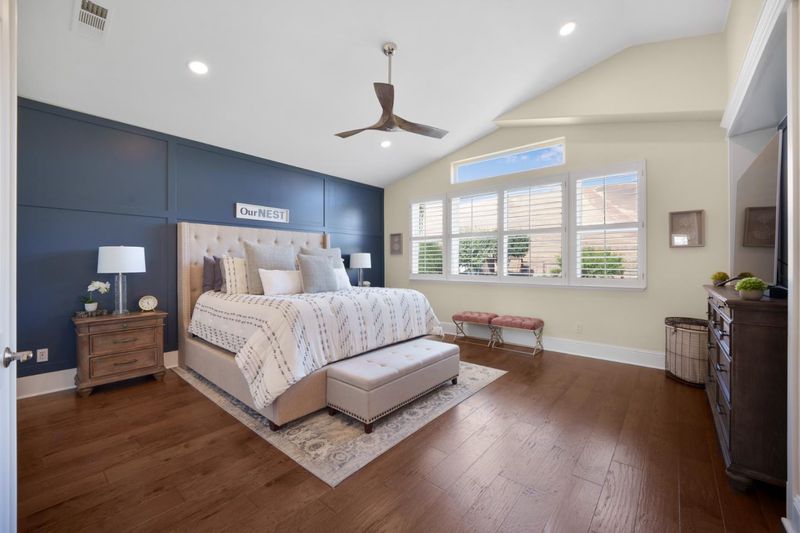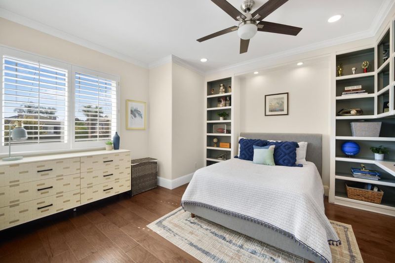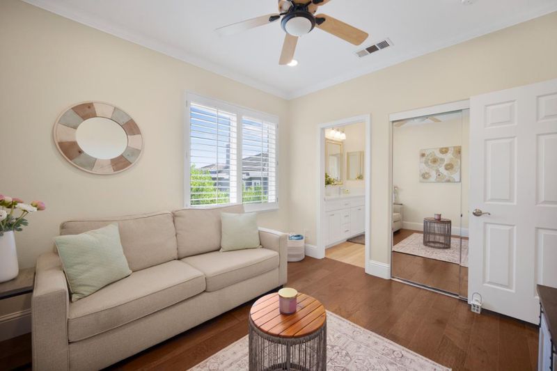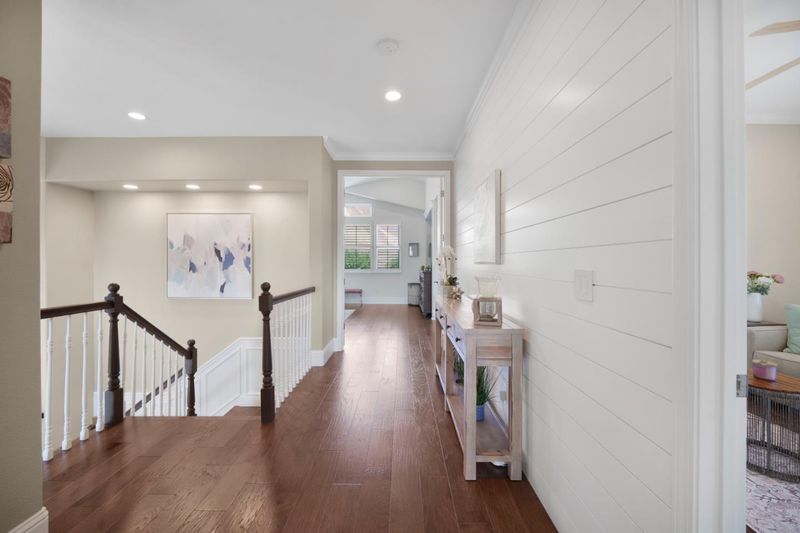 Nestled in a peaceful cul-de-sac, this pristine gem shows like a model, blending style, comfort, and thoughtful details. The open, light-filled floor plan features hardwood flooring, plantation shutters, and Lutron recessed lighting. A full downstairs bedroom and versatile bonus room provide perfect space for guests or a home office. At the heart of the home, the kitchen boasts quartz countertops, an island, and a pantry, opening to the spacious family room ideal for everyday living and entertaining. Additional highlights include a large living room and built-in HD surround system. Upstairs, the primary suite is a retreat with dual sinks, a soaking tub, and a walk-in closet, while the updated guest bath features quartz finishes and custom tile. The extra-large backyard, framed by rolling hills, offers multiple seating areas, four side-yard storage spaces, planter boxes, and a charming chicken coop. Practical perks include a garage with built-in cabinets, a 50-amp car charger, and owned solar. This home truly has it all, the perfect blend of elegance, comfort, and Morgan Hill living, conveniently close to parks, top schools, shopping, and vibrant downtown.