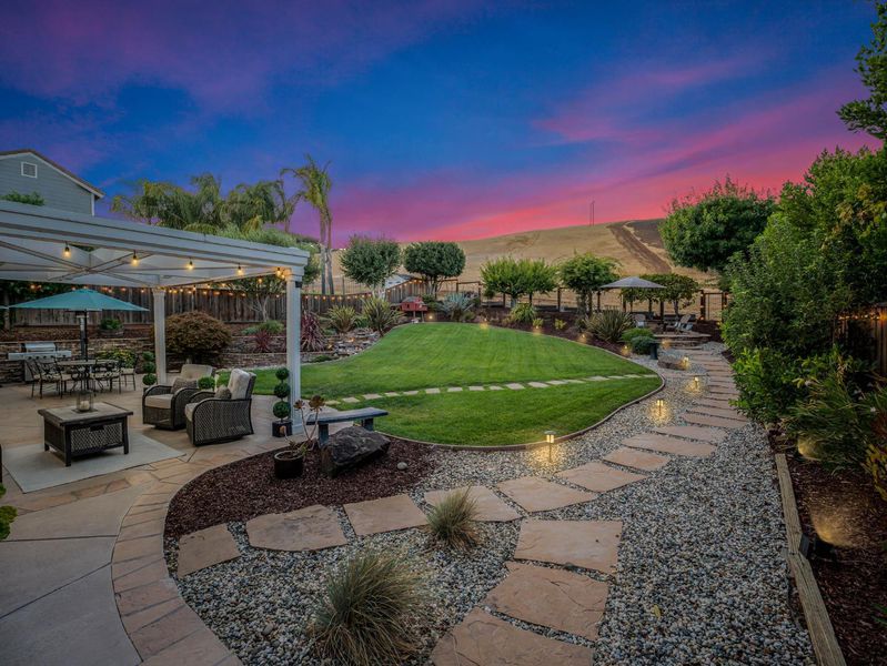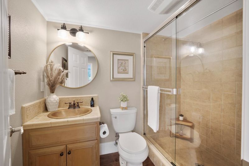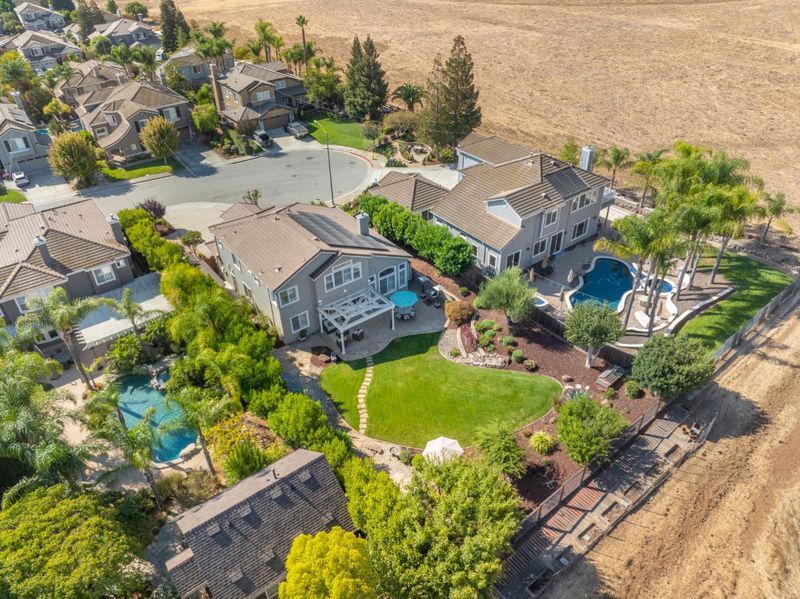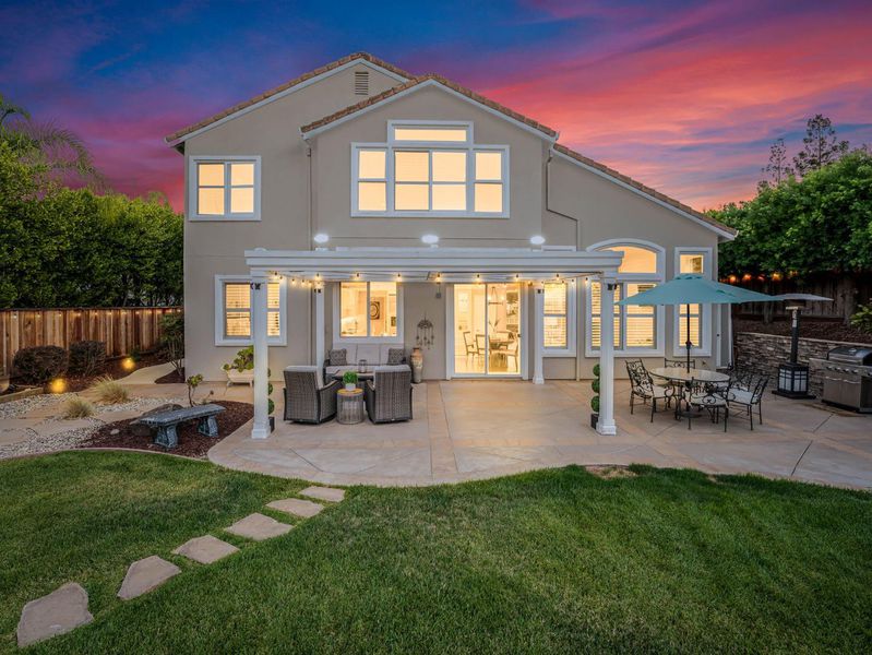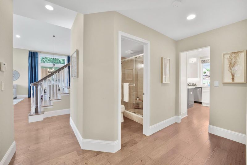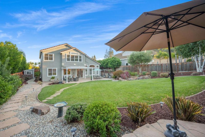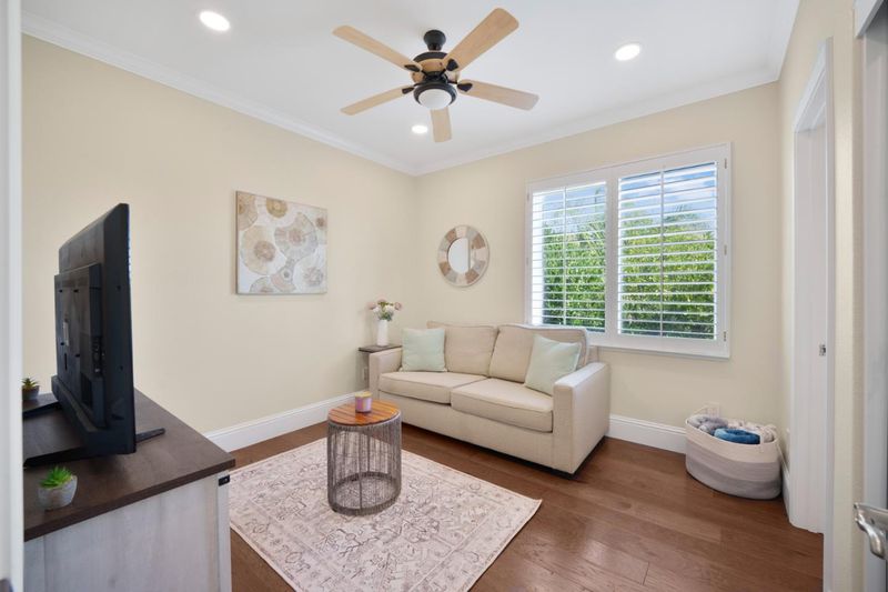 Nestled in a peaceful cul-de-sac, this pristine gem shows like a model, blending style, comfort, and thoughtful details. The open, light-filled floor plan features hardwood flooring, plantation shutters, and Lutron recessed lighting. A full downstairs bedroom and versatile bonus room provide perfect space for guests or a home office. At the heart of the home, the kitchen boasts quartz countertops, an island, and a pantry, opening to the spacious family room ideal for everyday living and entertaining. Additional highlights include a large living room and built-in HD surround system. Upstairs, the primary suite is a retreat with dual sinks, a soaking tub, and a walk-in closet, while the updated guest bath features quartz finishes and custom tile. The extra-large backyard, framed by rolling hills, offers multiple seating areas, four side-yard storage spaces, planter boxes, and a charming chicken coop. Practical perks include a garage with built-in cabinets, a 50-amp car charger, and owned solar. This home truly has it all, the perfect blend of elegance, comfort, and Morgan Hill living, conveniently close to parks, top schools, shopping, and vibrant downtown.
