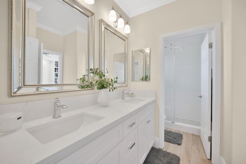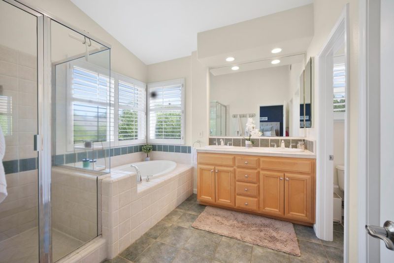 - Double Sinks, Full on Ground Floor, Oversized Tub, Primary - Oversized Tub, Stall Shower - 2+, Stone, Tile, Tub in Primary Bedroom, Updated Bath