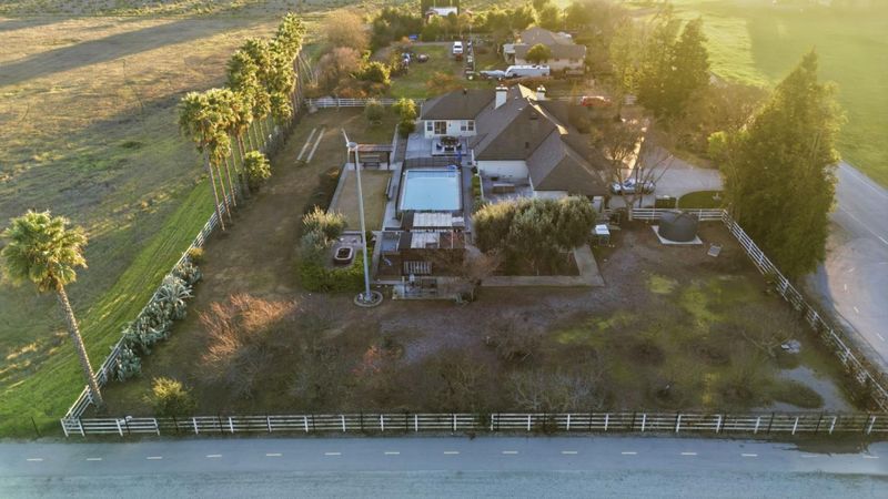 Gorgeous single-story Modern Ranch-House showcasing true pride of ownership. The well-designed open floor plan provides generous living space and features a cathedral ceiling in the living room, bringing an abundance of natural light. The property includes a spacious paver driveway plus additional concrete parking, ideal for oversized vehicles. Inside, enjoy newer flooring and fresh interior and exterior paint. kitchen has been updated with newly painted cabinets and newer stainless-steel appliances. The primary suite offers a cozy gas fireplace and a small lounge area, perfect for relaxing. The 3 car garage features epoxy-coated concrete flooring and workshop. Large Inside Laundry Room, Fire sprinklers, Storage Shed, Green House, Sprinkler System, Turbine Windmill, Solar panels- SunRun Company. Beautiful Outdoors, the pool has been recently re-plastered and includes a newer motor system, Orchard field, Horseshoe Pit, BBQ Area, Patio Deck, Water Tank for Fire Use. Ideal private location near walking trails, Highway 101, and close proximity to downtown Morgan Hill, known for its great restaurants, shopping, and family-friendly seasonal events.